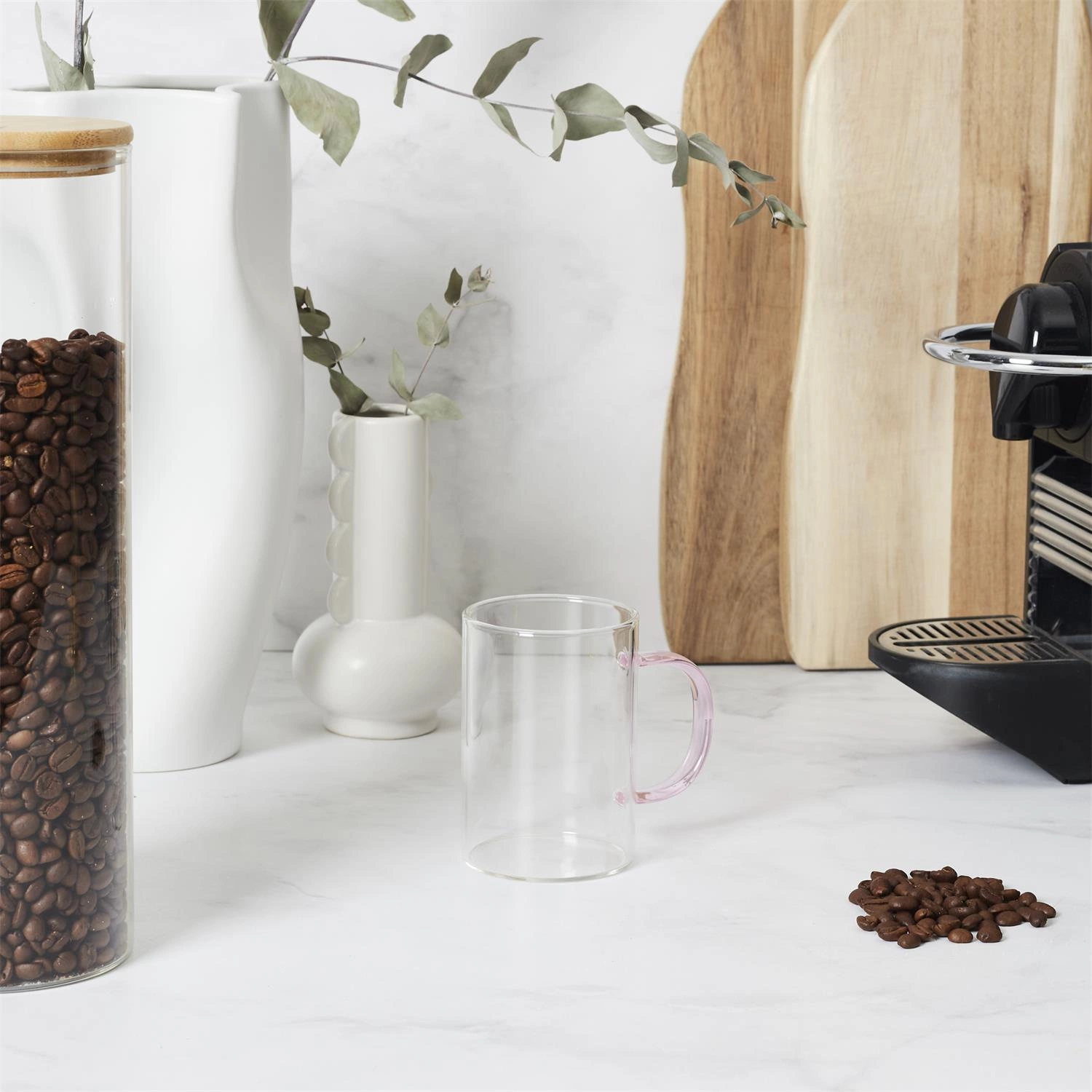 Sklenice na kávu Intesi Coloured s růžovým uchem je minimalistický skleněný doplněk, který zpříjemní každodenní rituály pití vašich oblíbených nápojů. Vyrobená z průhledného skla, o objemu 300 ml a výšce 10 cm, spojuje praktičnost s moderním designem. Charakteristické růžové ucho dodává sklenici jedinečný vzhled a možnost mytí v myčce zajistí pohodlné používání každý den.