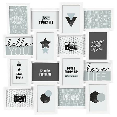 Bílý dřevěný fotorámeček na 16 fotografií 10x15 Gael Atmosphera na zeď, moderní koláž