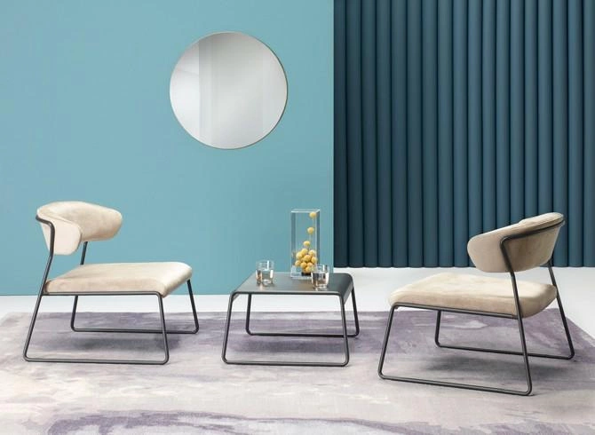 Lisa je lounge křeslo, které zaujme na první pohled. Hluboká zeleň sametové látky v kombinaci s lesklými zlatými lyžinami vytváří efektní, výrazný kontrast. Díky tomu se skvěle hodí jak do moderních obývacích pokojů, tak do elegantních ložnic nebo stylových pracoven. Jemné linie nábytku a absence područek dodávají interiéru lehkost a zároveň umožňují volné sezení v libovolné poloze.