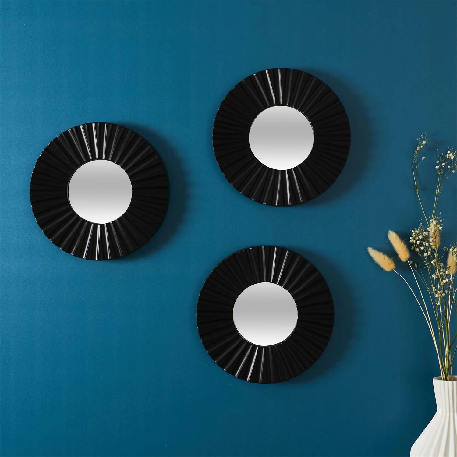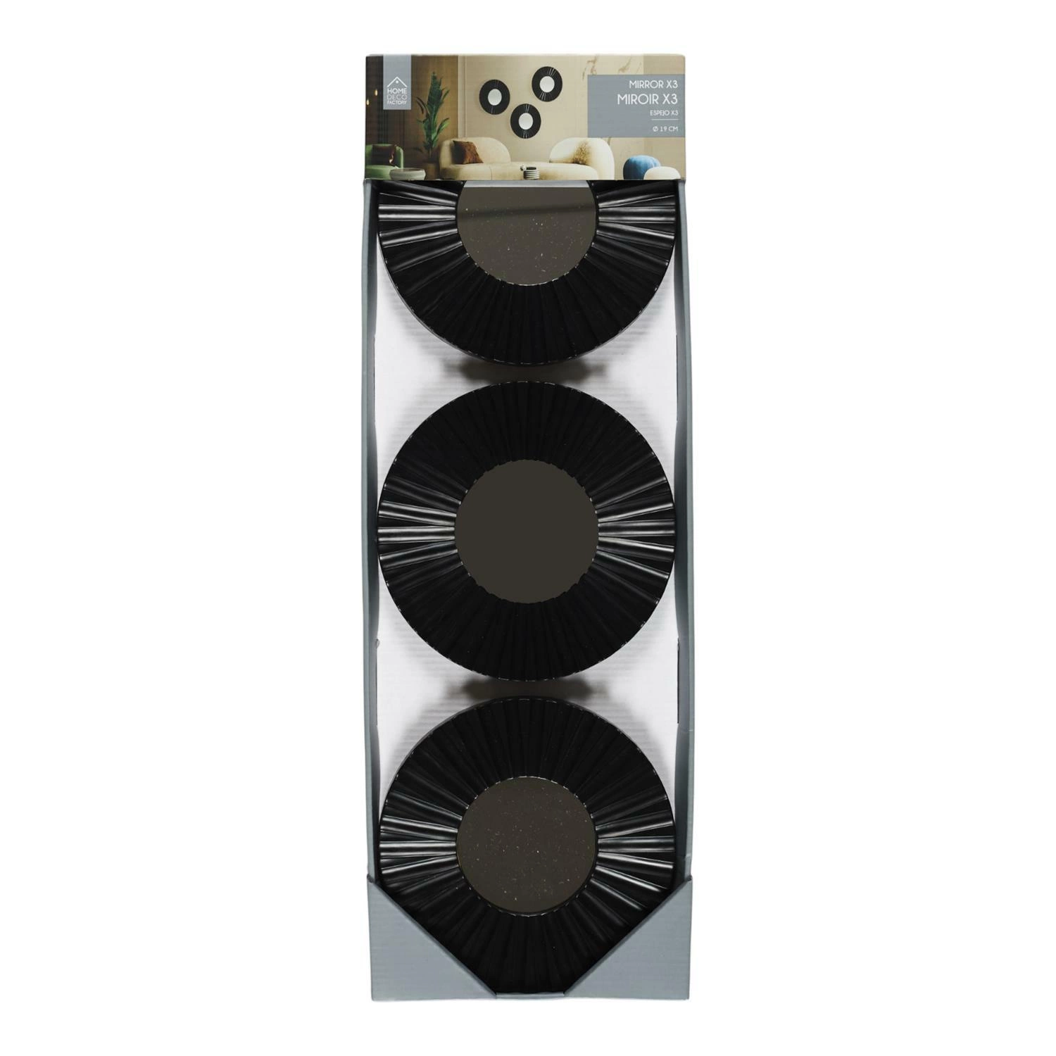 Sada tří zrcadel nabízí mnoho způsobů uspořádání – můžete je zavěsit v jedné řadě, v nepravidelném rozložení nebo rozdělit do různých místností. Skvěle vypadají nad konzolovým stolkem v předsíni, nad komodou v obývacím pokoji nebo jako jemný detail v ložnici. Jejich kulatý tvar a univerzální černá barva zajišťují, že perfektně zapadnou jak do minimalistických, tak výraznějších interiérů.