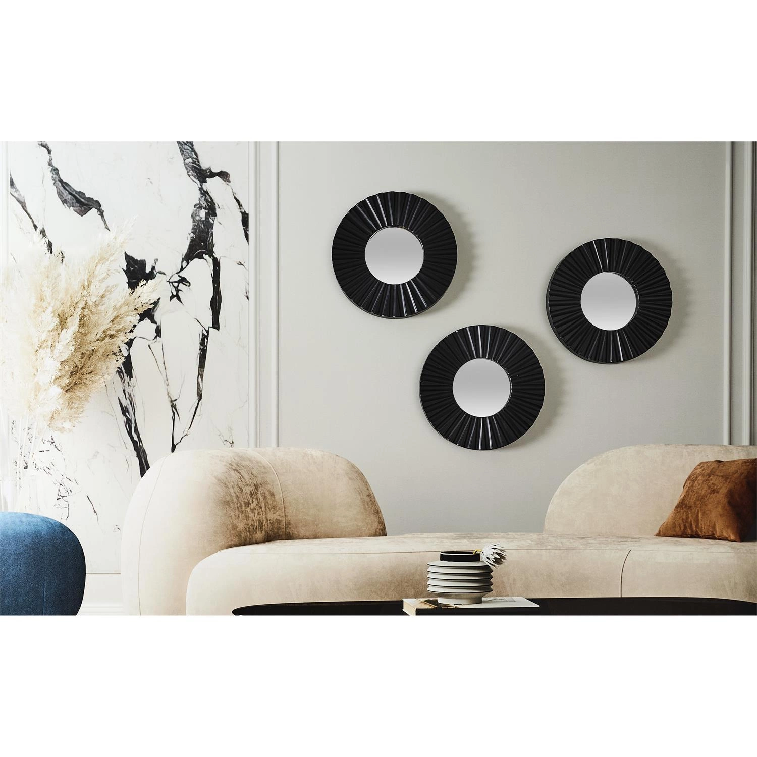 Kulatá zrcadla Origami Intesi v černém rámu spojují praktickou funkci s atraktivním designem. Jsou skvělou volbou pro ty, kteří chtějí rychle a stylově oživit svůj domov moderním akcentem a nadčasovou elegancí. Tato sada dekorativních zrcadel je nejen ozdobou stěny, ale také jednoduchým způsobem, jak vytvořit módní galerijní efekt, který nikdy nevyjde z módy.