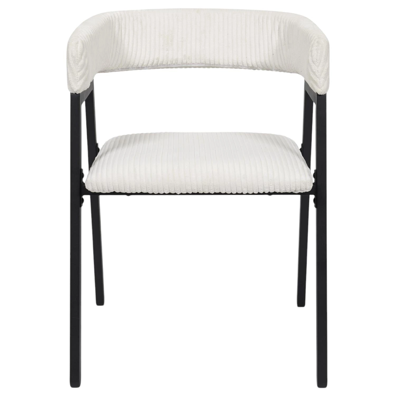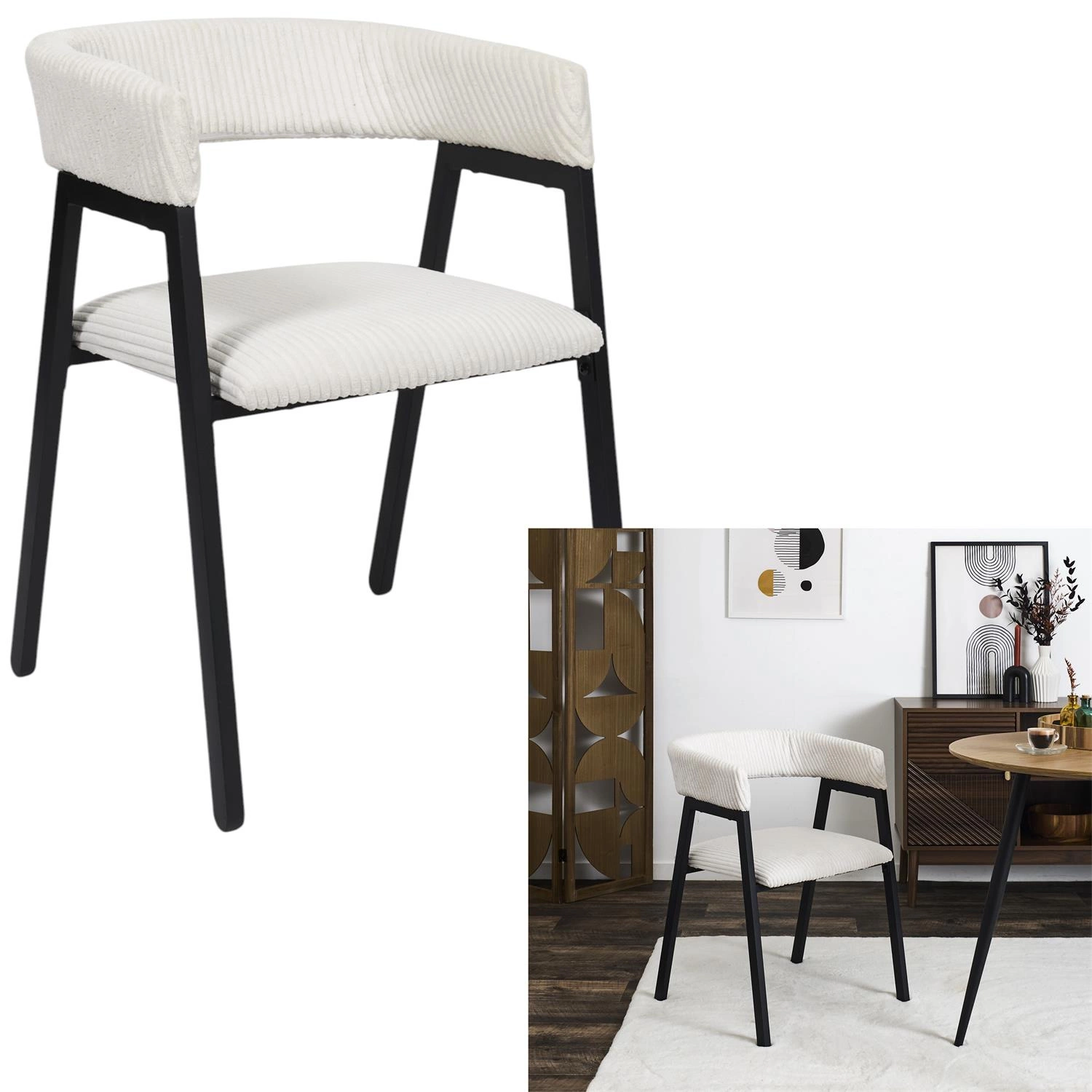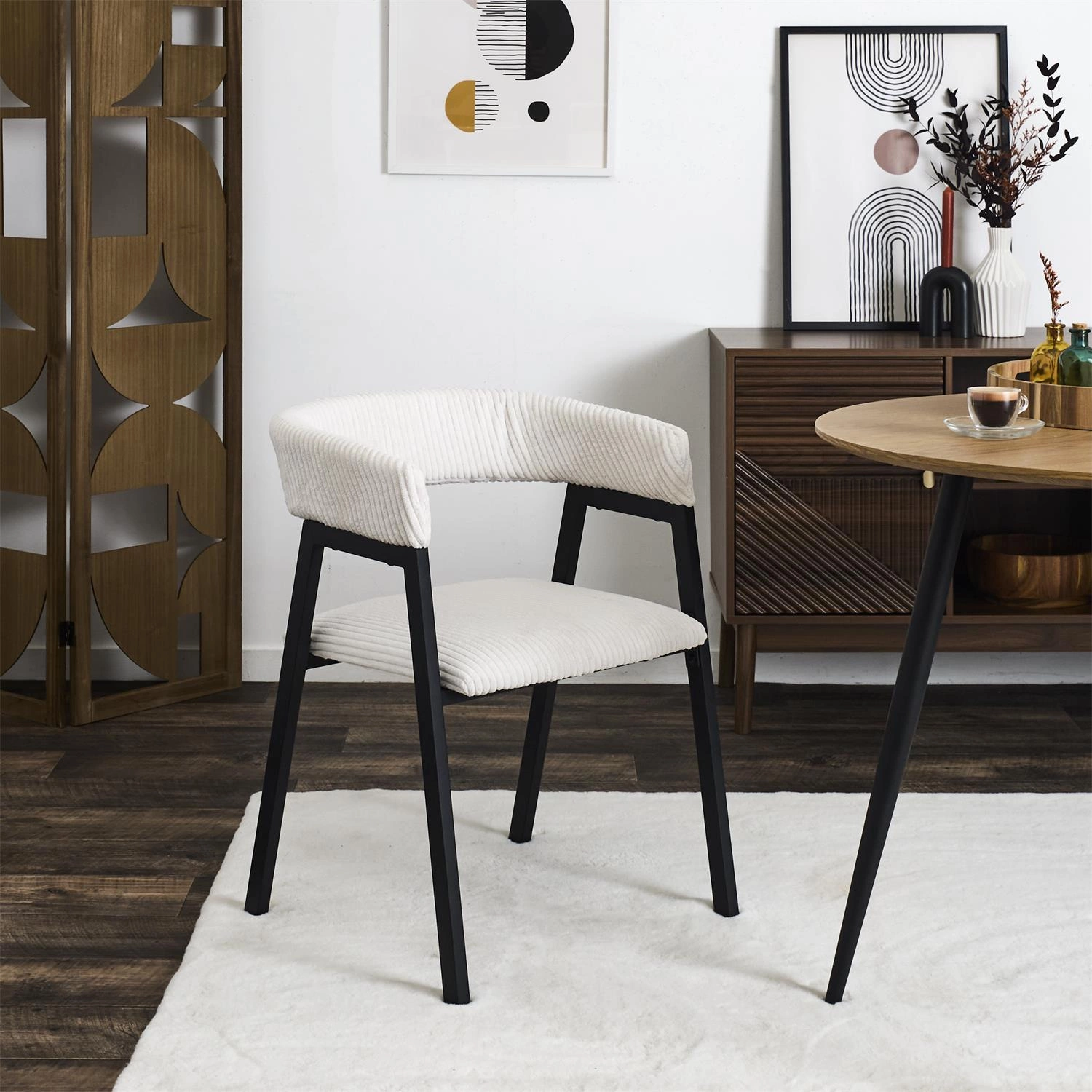 Židle Scott v bílé manšestrové látce zaujme minimalistickým tvarem a elegantním kontrastem materiálů. Černé kovové nohy jí dodávají industriální vzhled, který perfektně zapadá do aktuálních trendů loftového a moderního bydlení. Je to ideální volba pro ty, kteří hledají nábytek spojující pohodlí s výrazným stylem – skvěle se hodí jak ke stolu v jídelně, tak jako solitér do obývacího pokoje nebo moderní kuchyně. Díky univerzálním barvám ji snadno sladíte s různými interiéry.