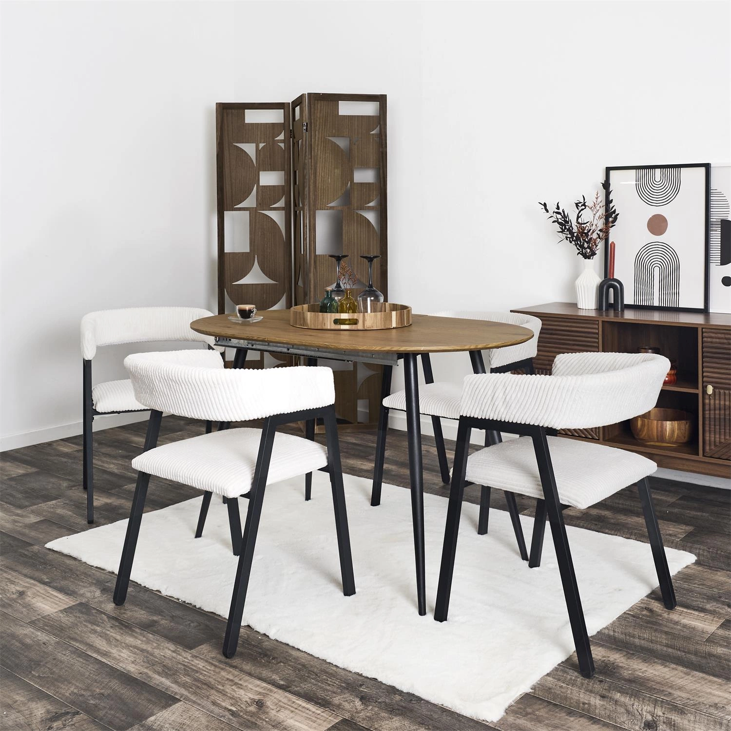 Profilované opěradlo, ergonomické područky (ve výšce 69 cm) a měkká čalouněná pěna zajišťují, že i delší posezení u stolu je opravdovým potěšením. Manšestrová látka nejen vypadá stylově, ale je také příjemná na dotek a snadno se udržuje v čistotě – stačí ji otřít, abyste odstranili běžné nečistoty. Sedák ve výšce 45 cm umožňuje pohodlné umístění židle ke většině standardních jídelních stolů.