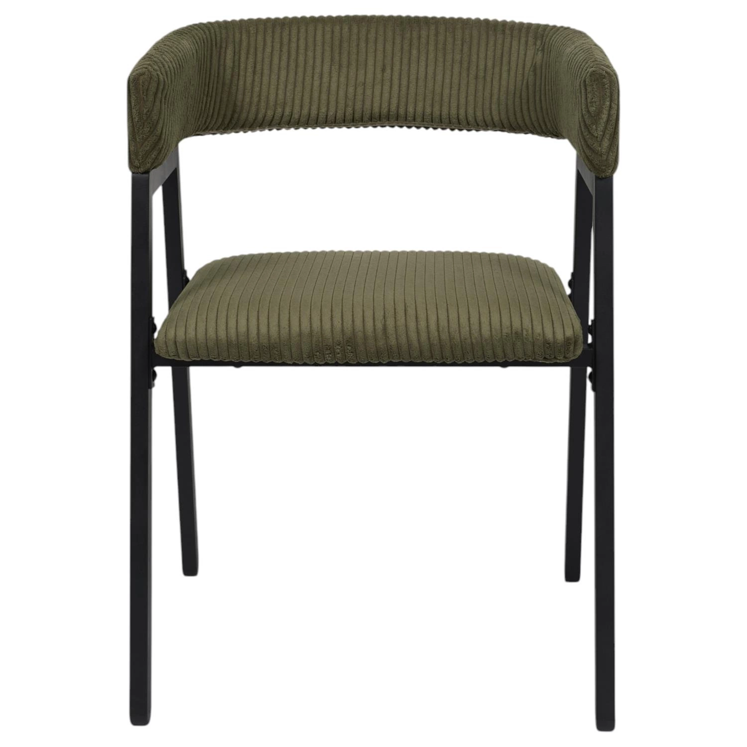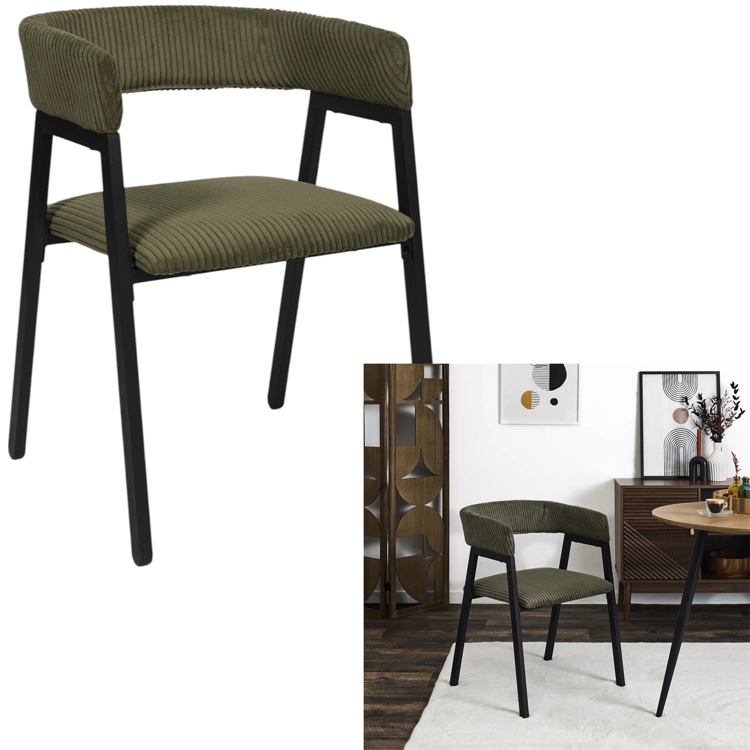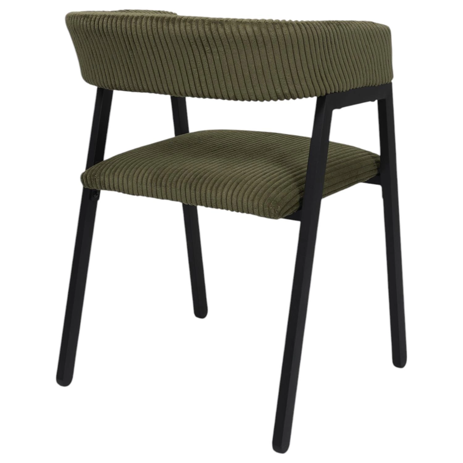 Židle Scott přináší do interiéru svěží nádech loftového stylu a elegance. Sametové manšestrové čalounění v olivové zeleni zaujme na první pohled a dodá prostoru jedinečný charakter. Jemný lesk látky a výrazné prošívání podtrhují moderní linii nábytku, zatímco kontrastní černé nohy skvěle ladí s aktuálními trendy v zařizování. Perfektní volba pro ty, kteří si potrpí na designové detaily v každodenním prostředí.