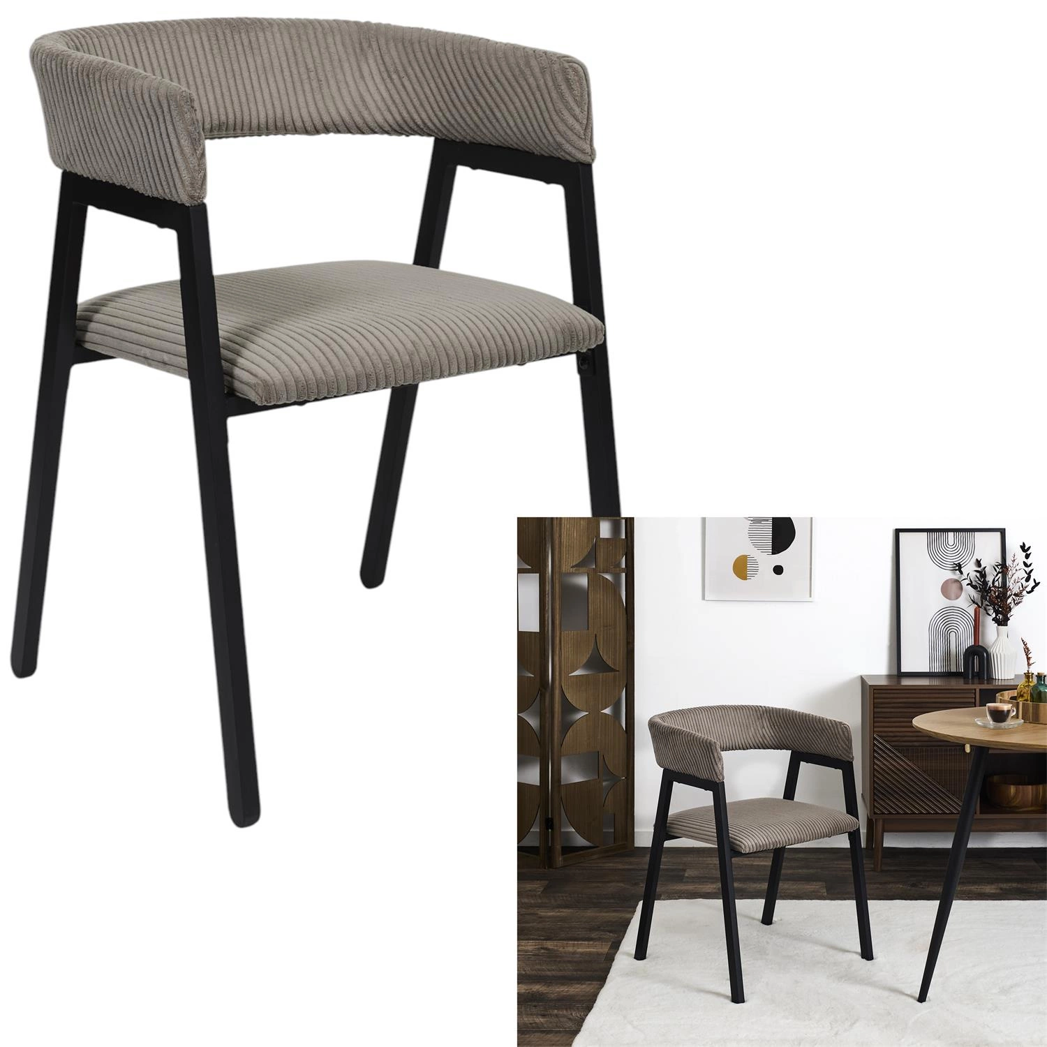 Minimalistický tvar, černé štíhlé kovové nohy a univerzální šedé čalounění vytvářejí harmonii, která perfektně ladí s trendy moderních i loftových interiérů. Židle Scott skvěle doplní jak industriální stoly, tak světlý, minimalistický nábytek. Díky manšestrové tkanině získá váš domov stylový detail a zajímavou barevnou hloubku.