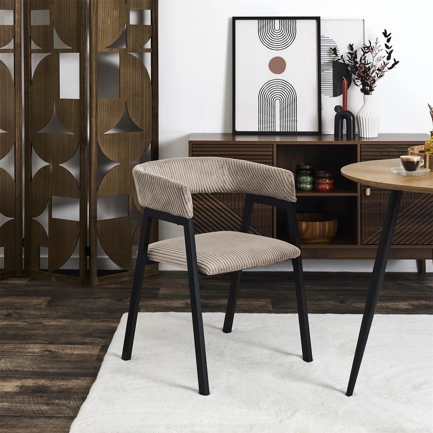 Scott je čalouněná židle, která překvapí měkkostí a pružností sedáku díky použití kvalitní čalounické pěny. Široké opěradlo a područky poskytují skvělou oporu, zatímco sametově hebký manšestr dodává interiéru útulnou atmosféru. Je to ideální volba na dlouhé rodinné večeře nebo chvíle relaxace s oblíbenou knihou v obýváku.