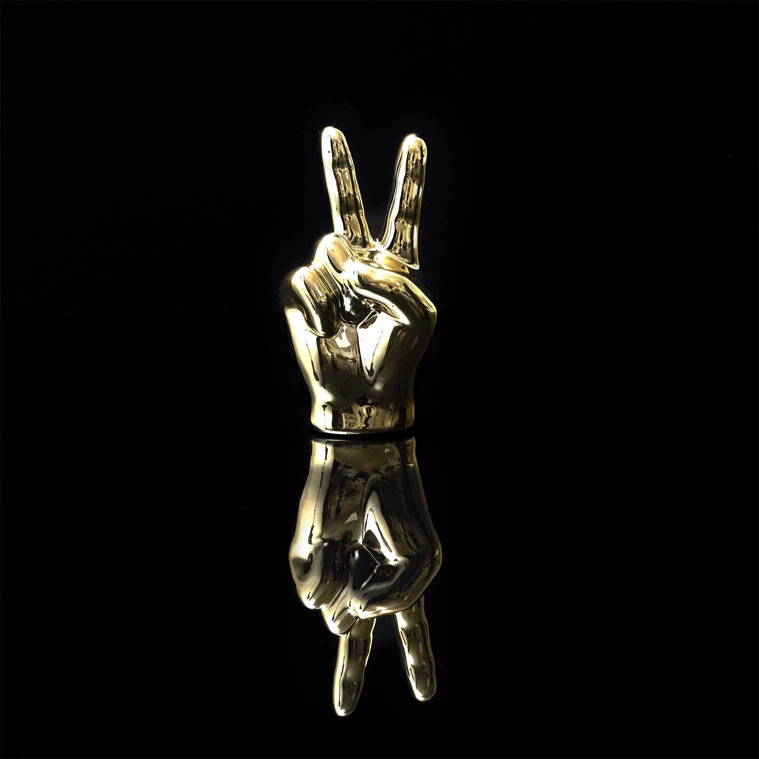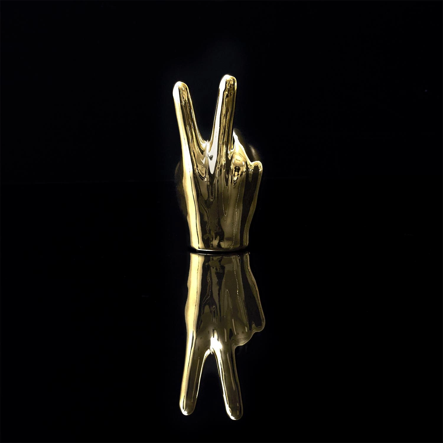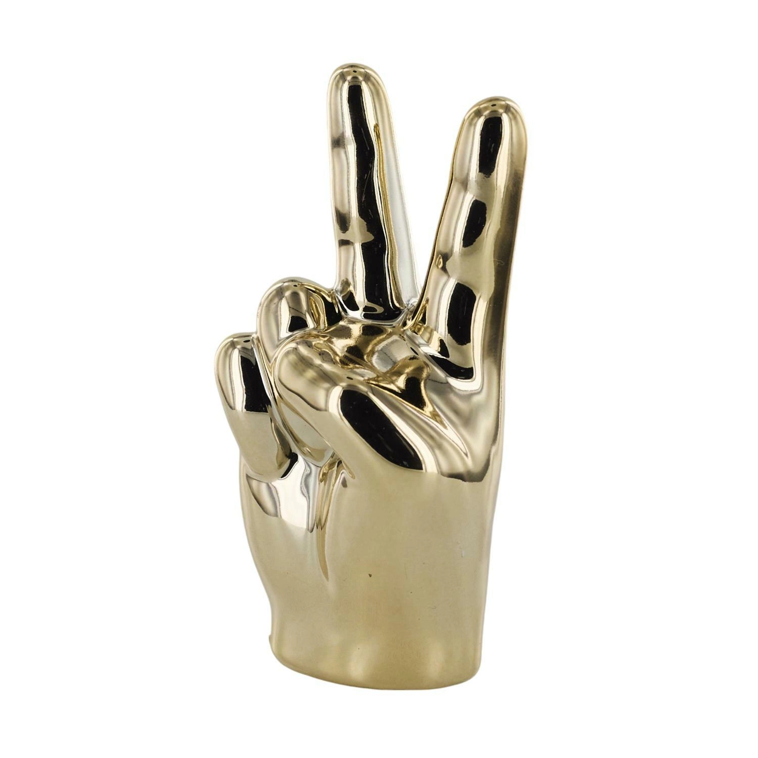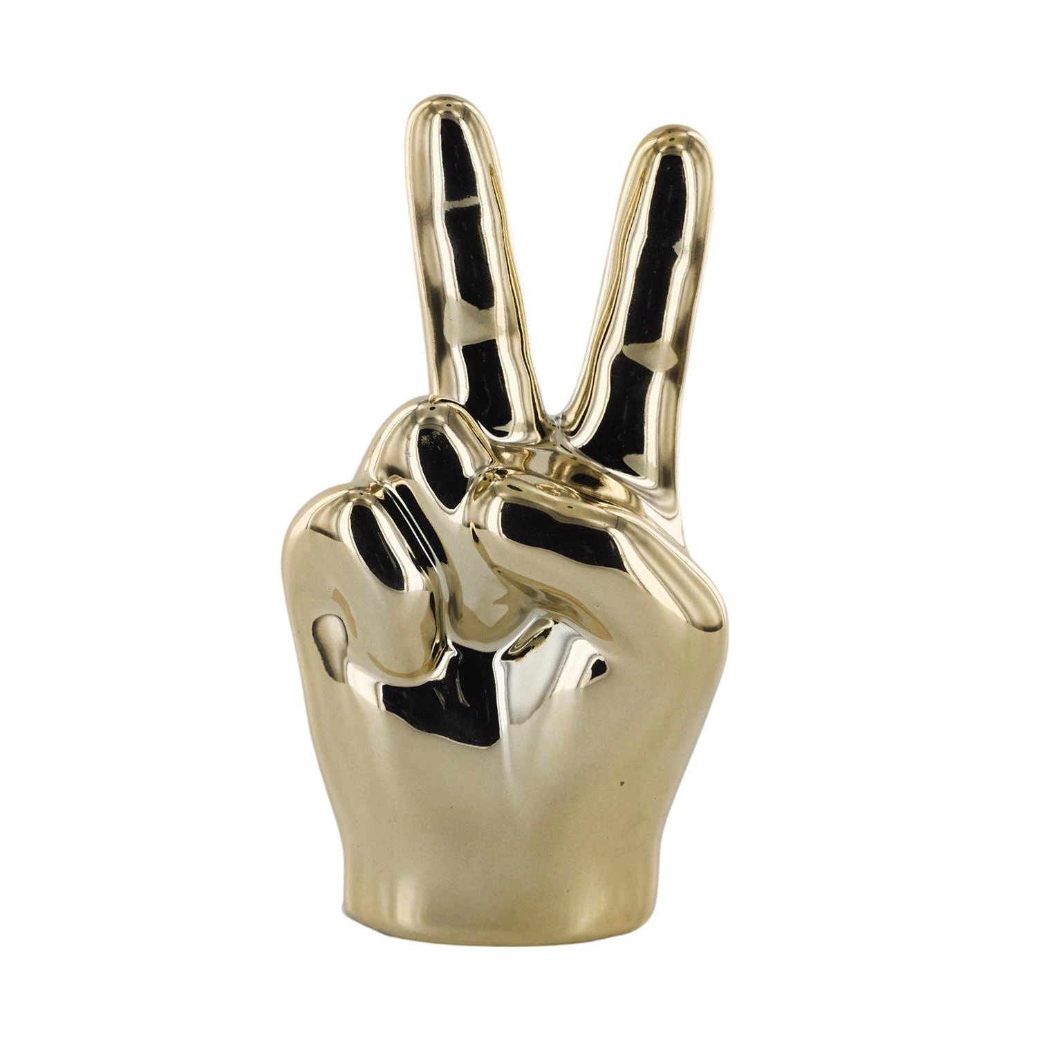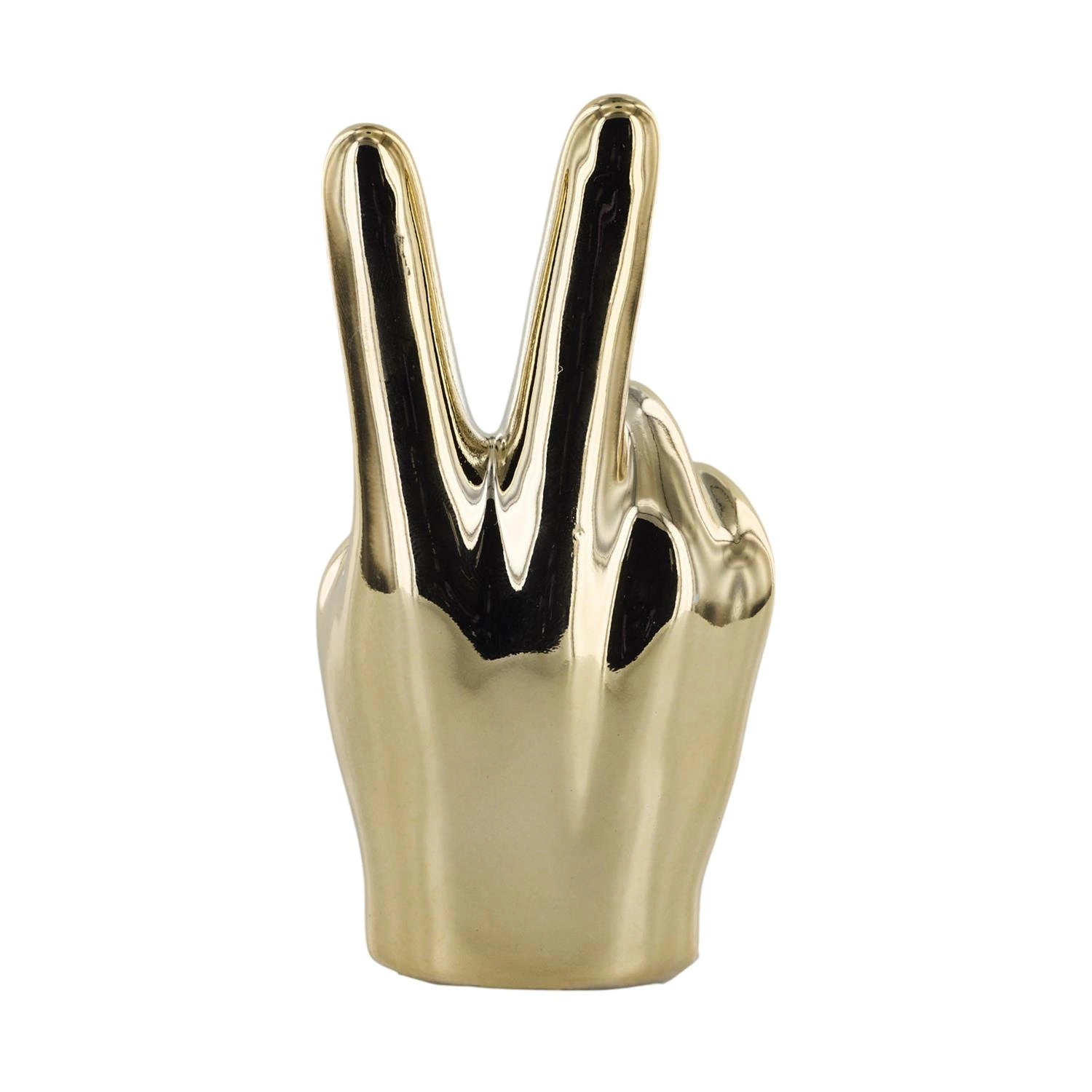 Tato dekorativní figurka ve tvaru ruky přesně odpovídá současným trendům v bydlení. Kombinace minimalistického tvaru a elegantního zlatého povrchu zaručuje, že produkt se hodí jak do glamour interiérů, tak i do prostor zařízených v duchu jednoduchosti. Díky univerzálnímu charakteru můžete vytvářet zajímavé kompozice – zkombinujte ji s dalšími figurkami z této řady a vytvořte si vlastní koláž symbolických gest. Takový doplněk vynikne jako dekorace na pracovním stole v kanceláři, decentní akcent na komodě v obýváku nebo originální prvek v pokoji teenagera. Figurka může být i nevšedním dárkem pro milovníky unikátních předmětů.