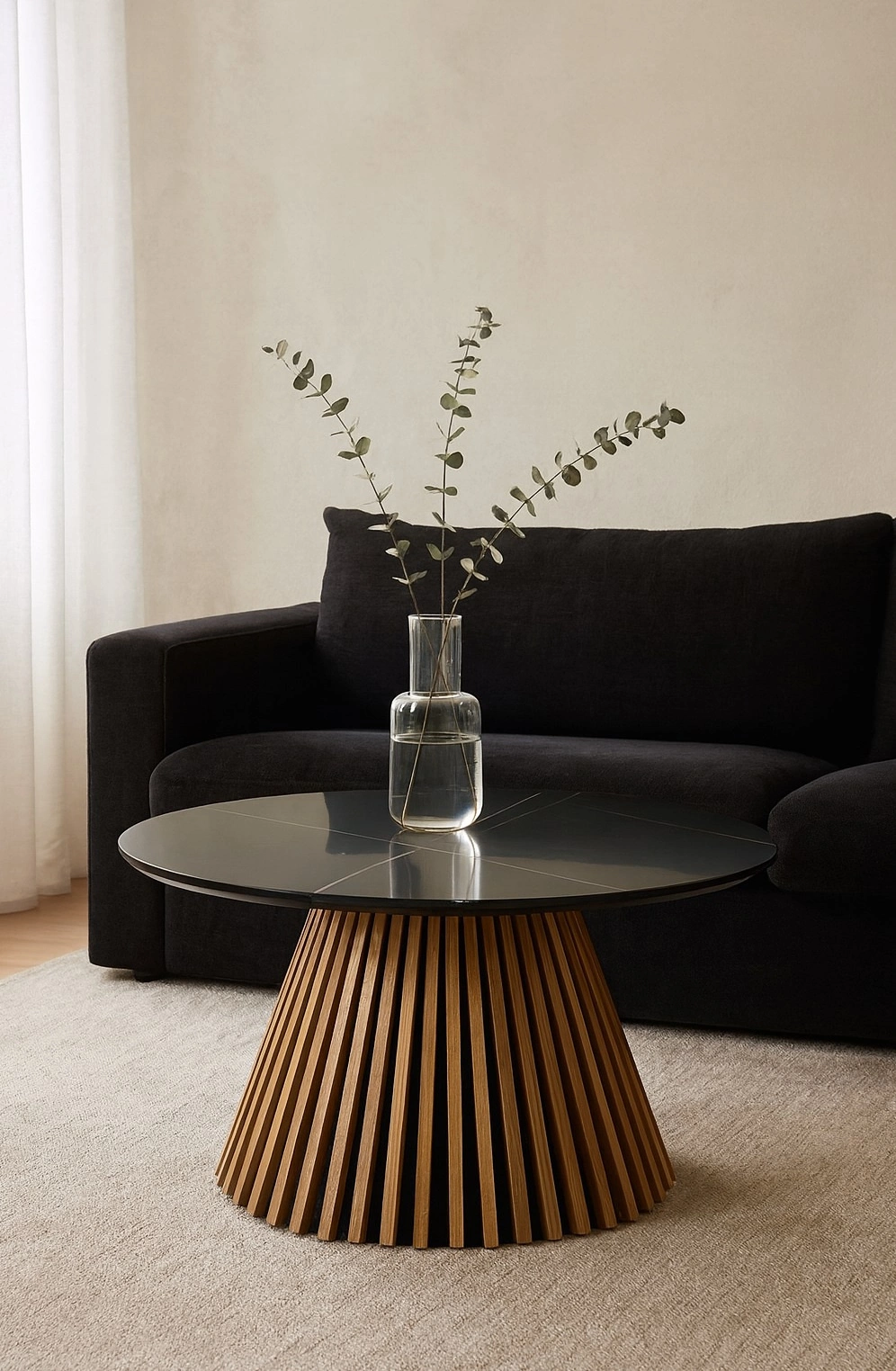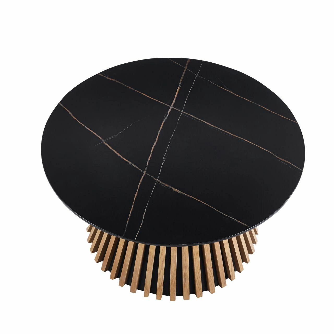 Kulaty konferenční stolek Kyoto 80 cm černý mramor dub od Intesi – moderní prvek do každého obývacího pokoje