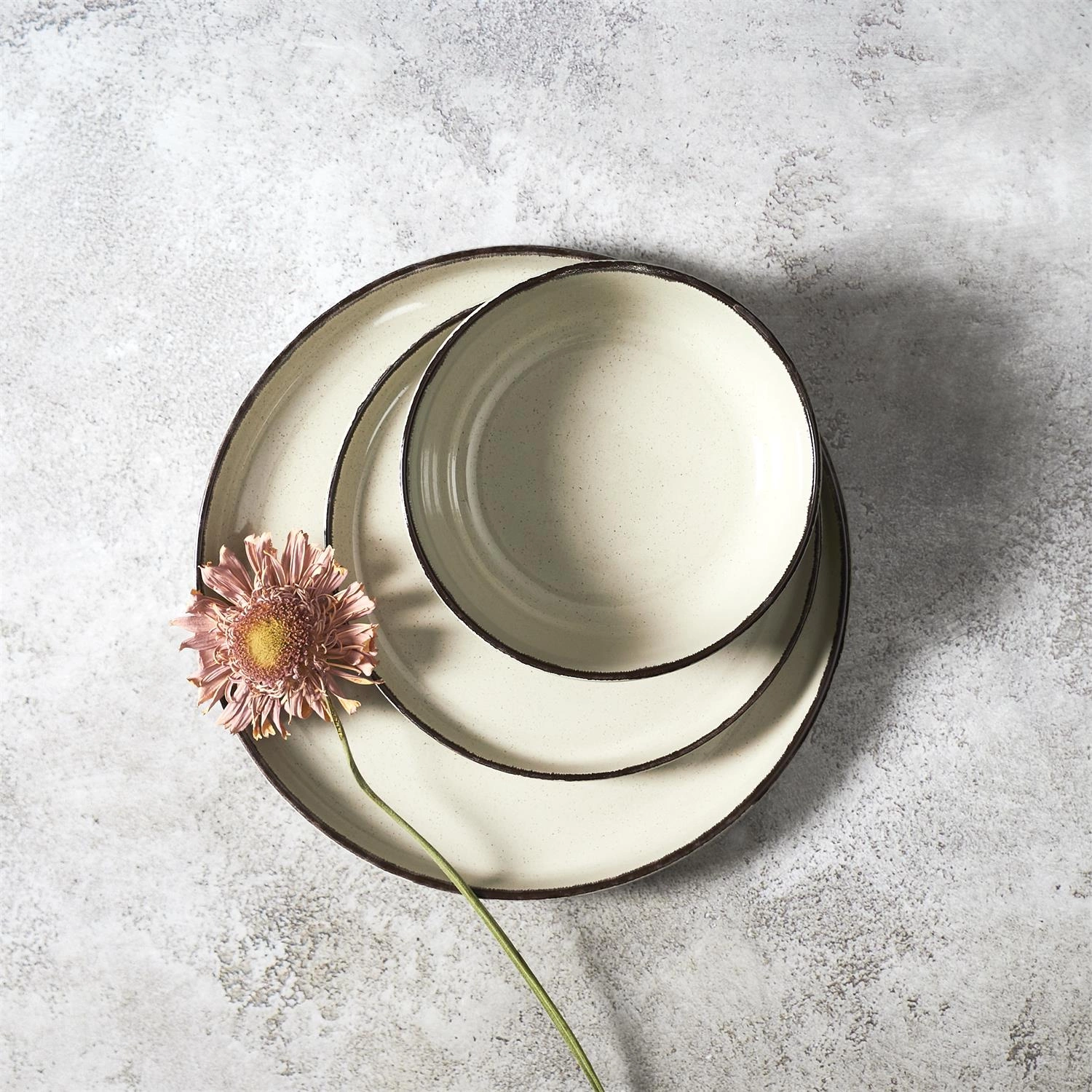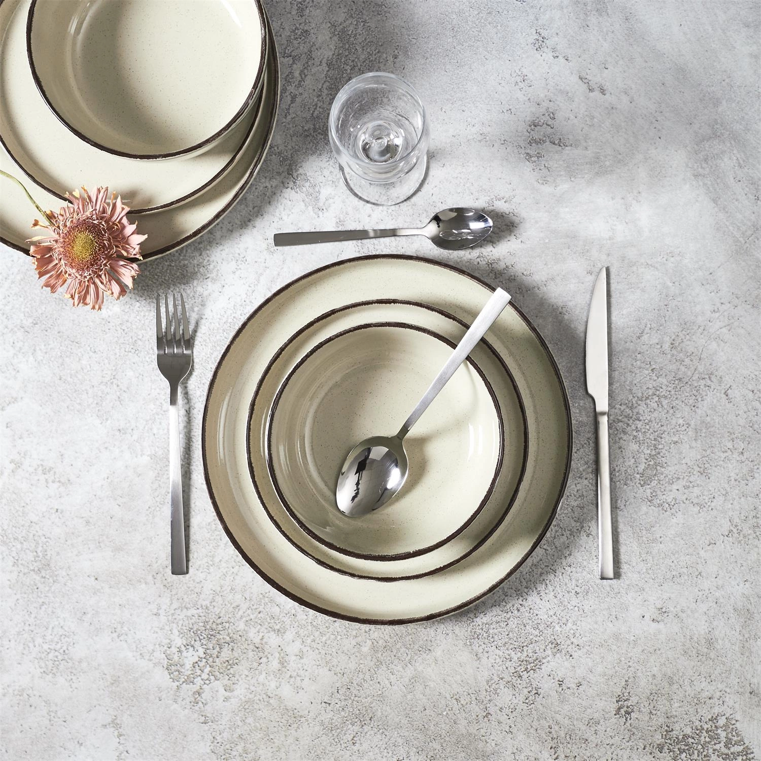 Jídelní souprava Temp pro 4 osoby od značky Intesi je ideální volbou pro ty, kteří ocení klasickou eleganci a praktičnost. Sada je vyrobena z keramiky v teplém béžovém odstínu a zaujme svým nepravidelným tvarem, který dodává každému kousku jedinečný charakter. Jídelní souprava Temp je vhodná do jídelny, kuchyně i restaurace a spojuje nadčasový styl s každodenní funkčností – všechny nádobí lze mýt v myčce, což výrazně usnadňuje údržbu.