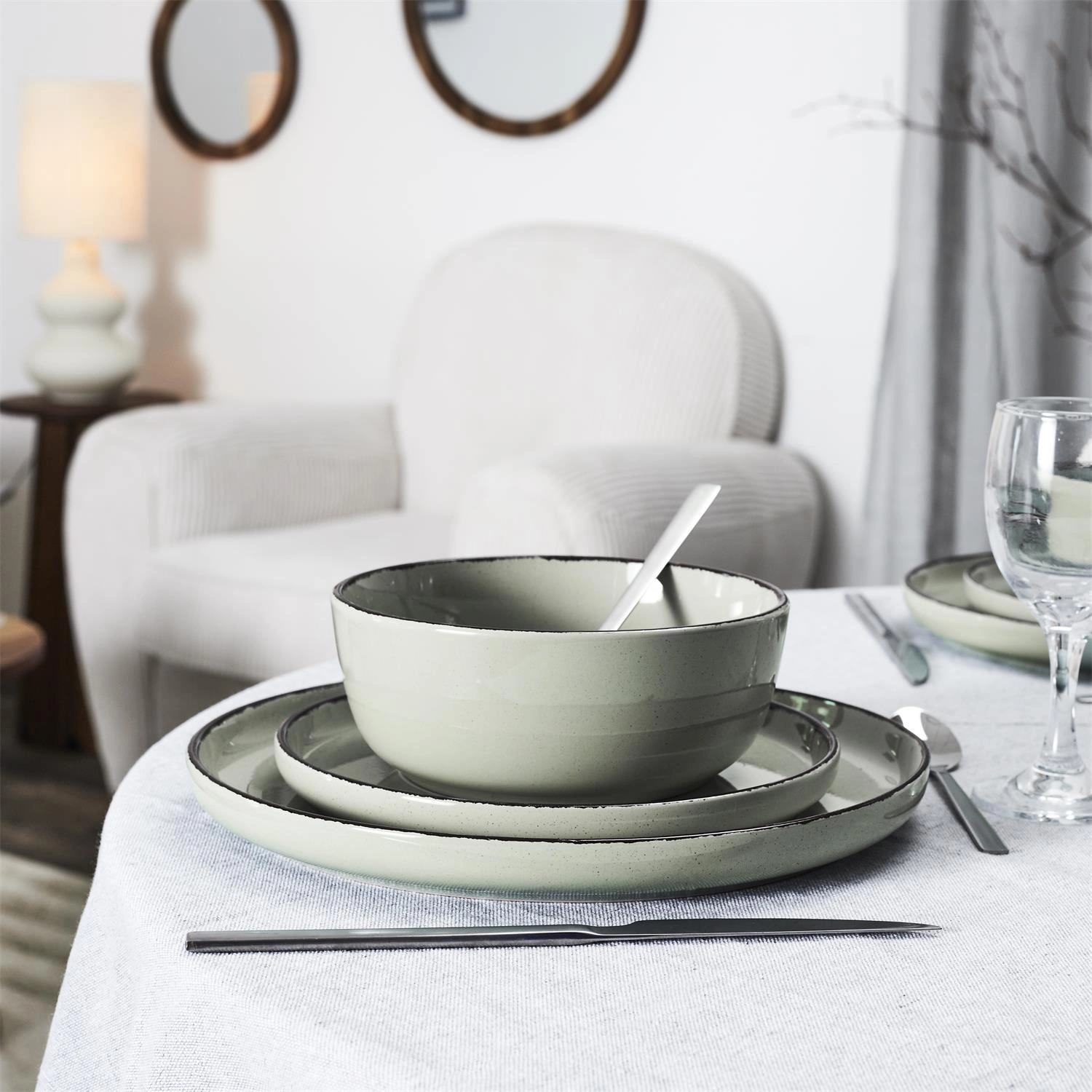 Jídelní souprava Temp v zelené barvě je ideální volbou pro ty, kteří chtějí, aby každý pokrm byl jedinečným zážitkem. Sada talířů a misek je vhodná jak pro každodenní snídaně, tak pro slavnostní obědy. Díky odolné keramice a praktickým vlastnostem, jako je možnost mytí v myčce, je jídelní souprava Temp investicí do pohodlí a stylu na každý den. Podtrhněte jedinečný charakter svého stolu a užijte si krásu klasického designu v moderním pojetí.