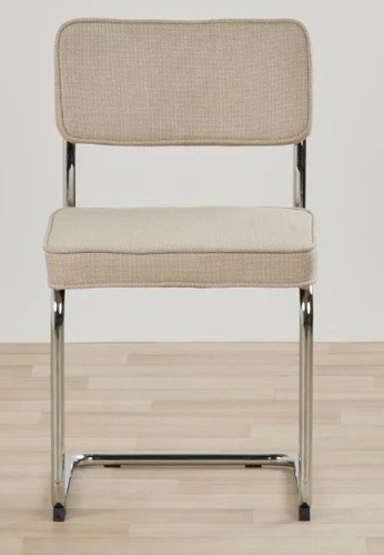 Minimalistický, moderní styl židle Tepper dokonale ladí s interiéry inspirovanými současnou elegancí. Jemná béžová barva čalounění zútulní místnost a zároveň zůstává neutrální, takže židli snadno sladíte s různými stoly a dekoracemi. Chromovaná základna na lyžinách dodává celku lehkost a zvýrazňuje jedinečný charakter nábytku. Ideální volba pro ty, kteří ocení stylový vzhled i pohodlí při každodenním používání.