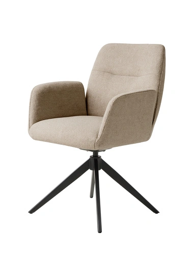Fotel obrotowy Rossa beżowy tapicerowany marki UNIQUE to stylowy mebel zaprojektowany z myślą o nowoczesnych wnętrzach. Miękkie siedzisko tapicerowane przyjemną w dotyku tkaniną, komfortowe podłokietniki oraz solidna czarna podstawa ze stali tworzą harmonijną całość, która wyróżnia się zarówno pod względem estetyki, jak i funkcjonalności. Dzięki funkcji obrotowej oraz kompaktowym wymiarom (wysokość 88 cm, szerokość 57,5 cm, głębokość 62 cm), fotel doskonale sprawdzi się w salonie, jadalni czy domowym gabinecie, zapewniając wygodę na co dzień.
