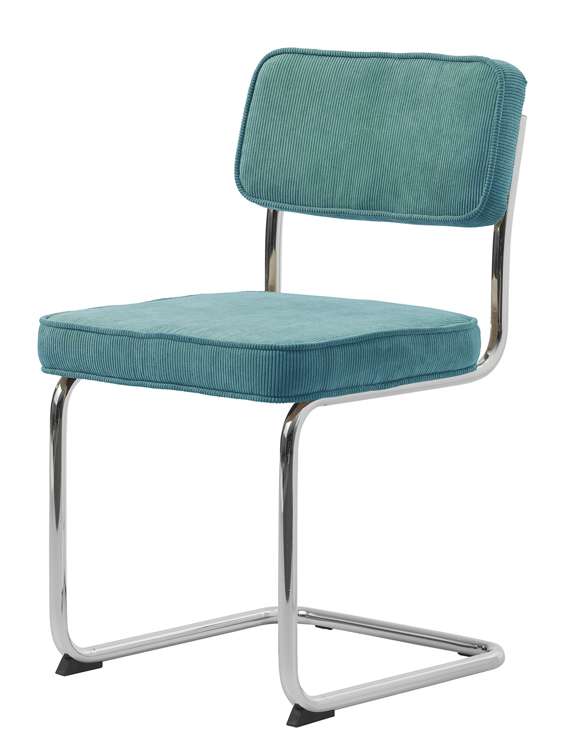 Design židle Tepper zaujme minimalistickým tvarem a sytě modrým čalouněním – je to stylová volba pro ty, kteří ocení jednoduchost a výrazné prvky. Jemné prošívání a typická struktura manšestru dávají židli osobitý vzhled, který ozdobí každý moderní interiér. Chromovaná podnož nejen dodává eleganci, ale také opticky zesvětluje prostor.