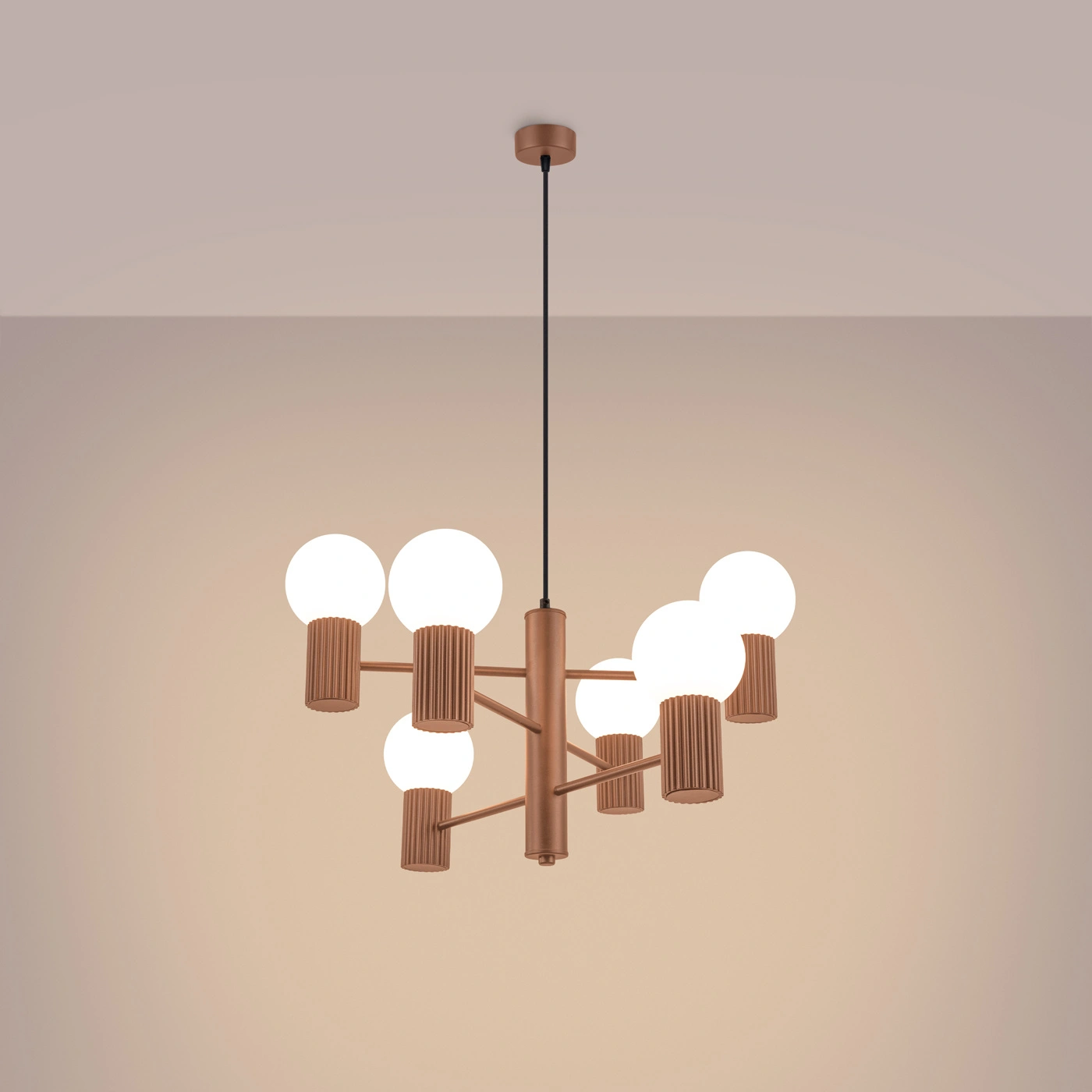 Moderní lustr HALO 6 kávový do obýváku a jídelny, hliník, 64 cm