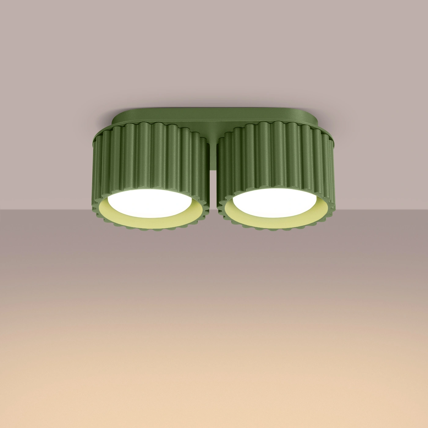 Moderní stropní svítidlo AURA 2 od značky Sollux Lighting je designové stropní osvětlení vyrobené z odolného hliníku v trendovní olivově zelené barvě. Kulatý tvar o výšce 21 cm a šířce 10 cm se skvěle hodí do moderních interiérů obývacího pokoje, kuchyně, jídelny nebo předsíně. Díky dvěma světelným zdrojům typu GX53 umožňuje přesné osvětlení prostoru a zároveň se stává originální dekorací stropu.