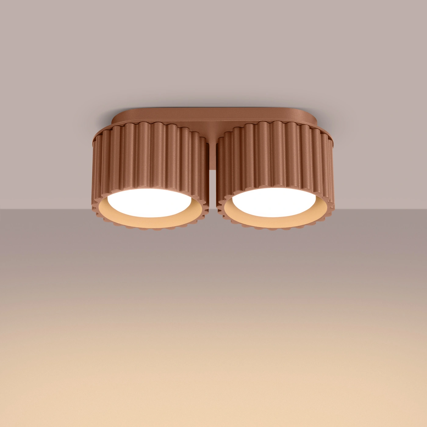 Plafon AURA 2 zaujme jemným geometrickým designem, který perfektně ladí s moderními i minimalistickými interiéry. Kulatý tvar a rýhovaný povrch proměňují svítidlo nejen v zdroj světla, ale také ve stylový dekorativní doplněk. Kávová barva svítidla dodá interiéru útulnost a nadčasovou eleganci, skvěle se kombinuje jak se světlými, tak i tmavšími odstíny stěn a nábytku.