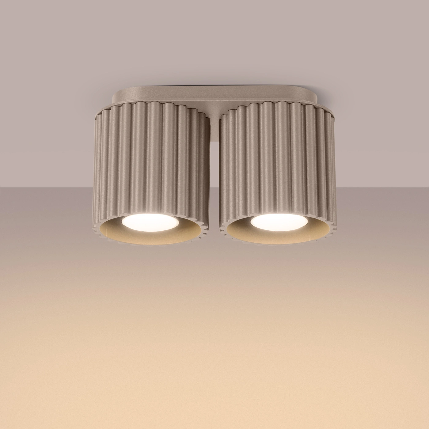 Stropní svítidlo moderního stylu AURA 2 taupe od značky SOLLUX LIGHTING je elegantní dekorativní osvětlení z hliníku, které skvěle zapadne do minimalistických interiérů. Se dvěma světelnými zdroji GU10 s maximálním výkonem 2×10W je plafon o rozměrech 21 × 10 × 12 cm ideální jako funkční stropní svítidlo do obývacího pokoje, kuchyně, jídelny nebo předsíně. Tmavě béžový odstín taupe dodává interiéru útulnost a jednoduchý tvar zajišťuje snadné sladění s moderním prostorem.