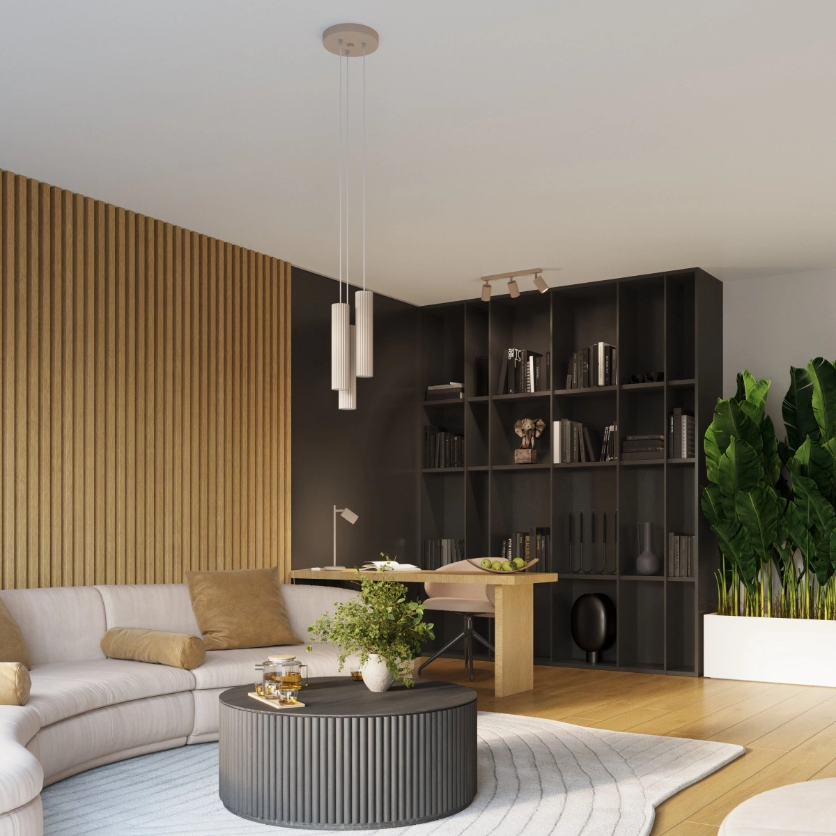 Moderní stropní svítidlo do obýváku a kuchyně KARBON 2 vyniká jednoduchými, geometrickými liniemi a atraktivní rýhovanou strukturou. Tmavě béžový odstín dodává prostoru teplo a jemnou eleganci, zatímco matný povrch působí velmi stylově jak samostatně, tak v kombinaci s dalšími prvky kolekce. Díky minimalistickému designu se KARBON 2 skvěle hodí k aktuálním trendům v bydlení a podtrhuje jednotný a harmonický vzhled interiéru.