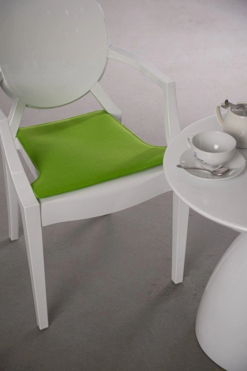 Intenzivní zelený odstín podsedáku Royal Intesi je jednoduchým způsobem, jak osvěžit interiér bez nutnosti nákladné rekonstrukce. Filcová tkanina jemně podtrhuje moderní styl a dodává prostoru útulnost. Podsedák vypadá skvěle jak na klasických, tak designových židlích – v kuchyni i jídelně. Jeho kulatý tvar s mírným prodloužením (42x44 cm) se snadno přizpůsobí většině běžných modelů židlí.