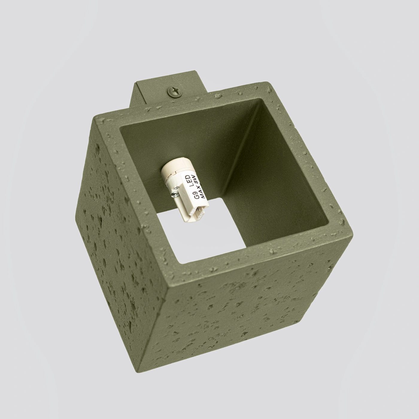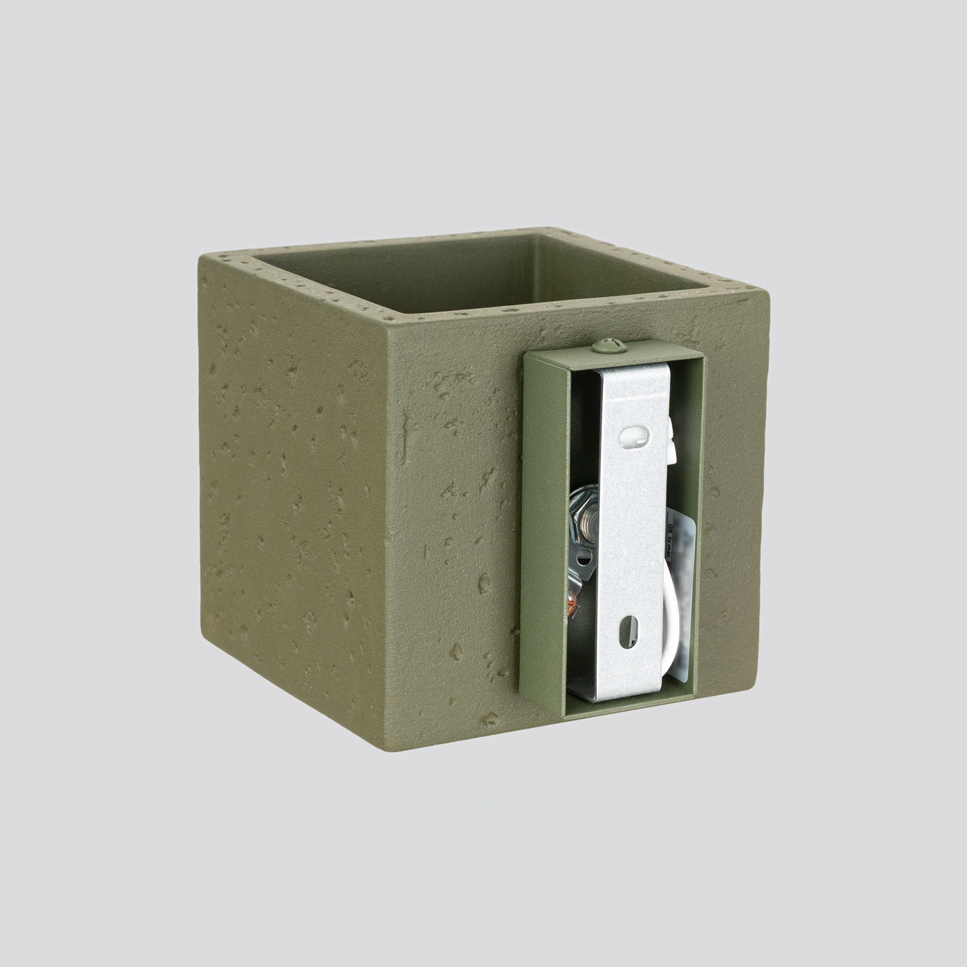 Betonový nástěnný svítilna QUAD je esencí moderního industriálního stylu. Hrubý beton se zde snoubí s jemnou geometrií a vytváří jedinečný, harmonický prvek na stěně. Olivově zelený odstín stínidla zjemňuje chlad betonu a vnáší do interiéru decentní dotek přírody. Taková nástěnná lampa skvěle podtrhne atmosféru loftového obývacího pokoje i minimalistické ložnice a dodá prostoru originalitu.