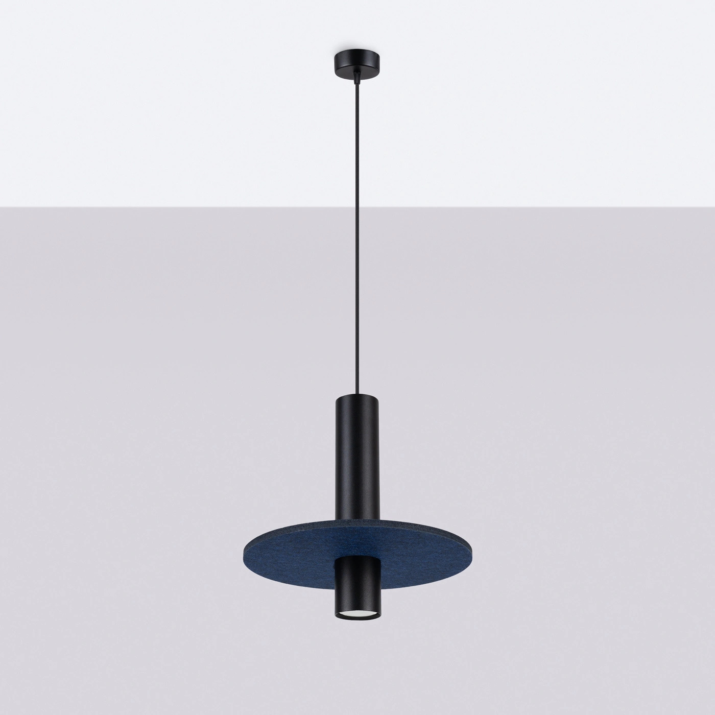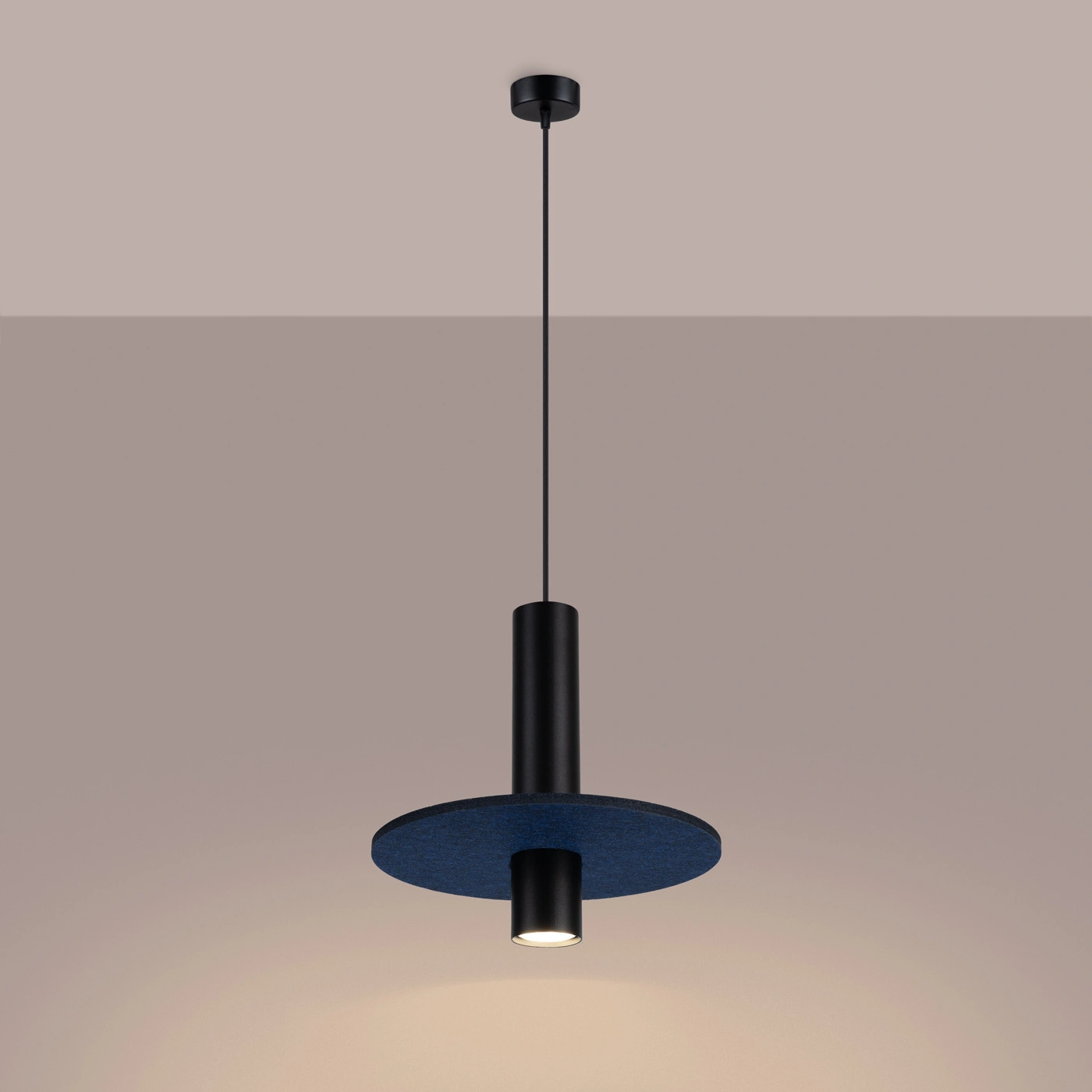 Závěsné svítidlo PELTA 1 od značky SOLLUX LIGHTING je moderní stropní osvětlení o průměru 30 cm, které zaujme hlubokým námořnicky modrým stínidlem z filcu a elegantními černými detaily. Kombinace oceli a filcu dělá z této lampy ideální volbu do obývacího pokoje, jídelny, kuchyně nebo předsíně, kde podtrhne současný styl interiéru a navodí útulnou atmosféru. Tento jednotlivý závěsný lustr byl navržen s důrazem na dekorativní efekt, přičemž nabízí i praktické bodové osvětlení.