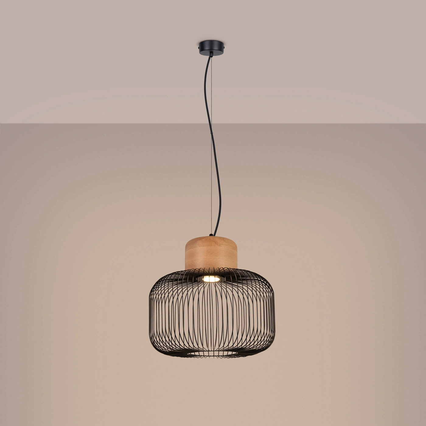 Závěsné svítidlo Gabbia 35 od značky SOLLUX LIGHTING spojuje industriální styl s přírodním akcentem dubového dřeva. Černá ocelová konstrukce o šířce 35 cm je doplněna prvky z přírodního dubu, což vytváří efektní a zároveň univerzální osvětlení do moderního interiéru. Tento model není jen dekorativní stropní lampa – je to i praktické svítidlo do obýváku, jídelny nebo kuchyně, které dodá osobitý charakter každé současné domácnosti.