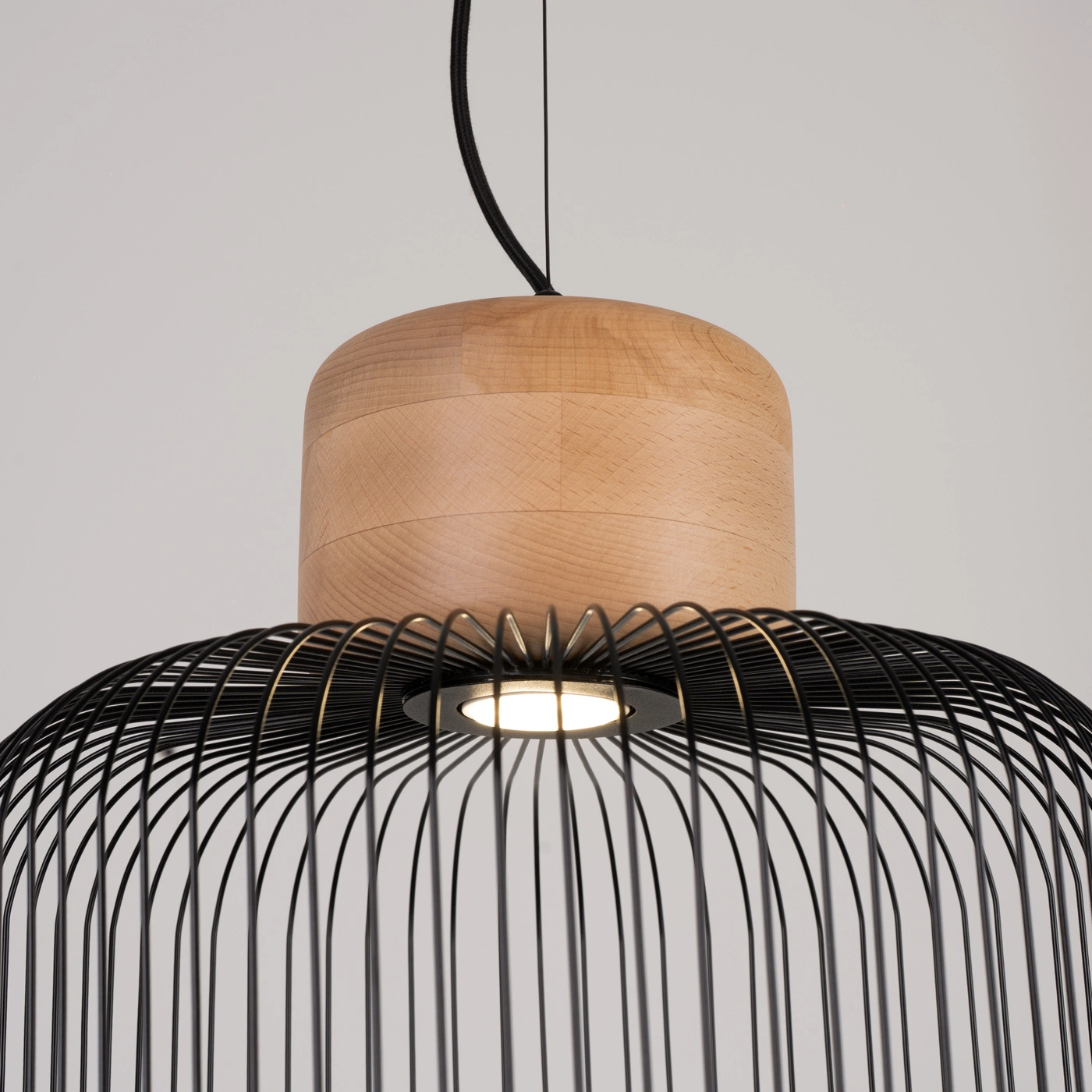 Gabbia 35 je závěsná lampa ideální pro milovníky syrové, loftové atmosféry. Černé, vzdušné stínidlo z oceli vytváří zajímavou hru světla a stínů, která navodí útulnou atmosféru v každé místnosti. Díky kontrastu mezi ocelovými a dubovými detaily se tento model skvěle vyjímá nad jídelním stolem, kuchyňským ostrůvkem nebo v centrálním bodě obývacího pokoje a podtrhuje jedinečný charakter prostoru.