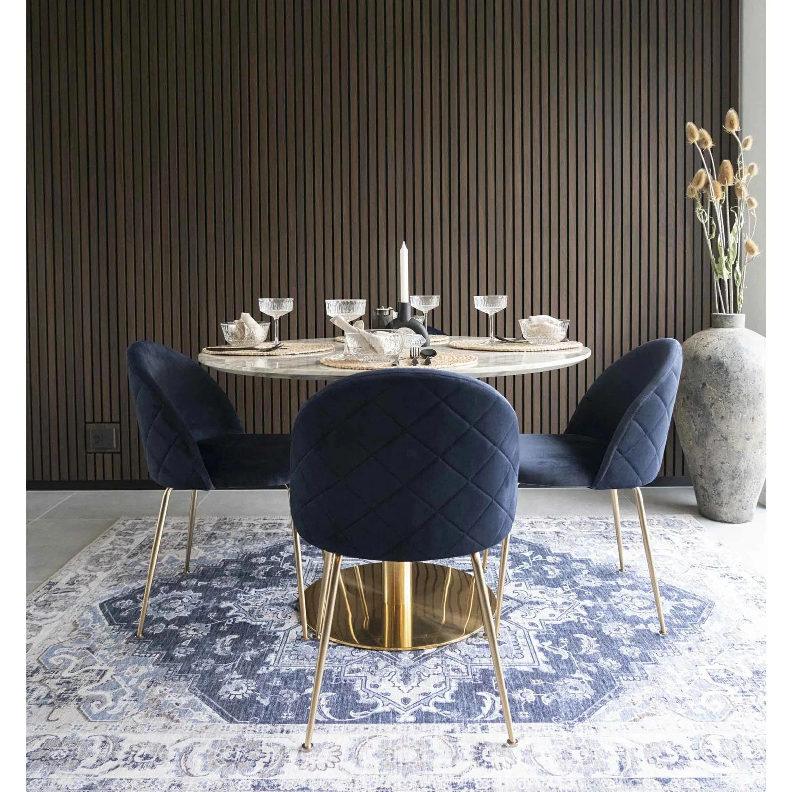 Modrý koberec Havana 160x230 byl navržen pro milovníky nadčasového stylu. Vícebarevný, decentní vzor inspirovaný klasickými koberci dodává interiéru útulnost, aniž by narušoval celkové ladění. Takový koberec do obýváku se perfektně hodí k dřevěnému nábytku, sametové sedačce nebo čalouněným židlím v jídelně a pomáhá vytvořit ucelený, elegantní interiér.