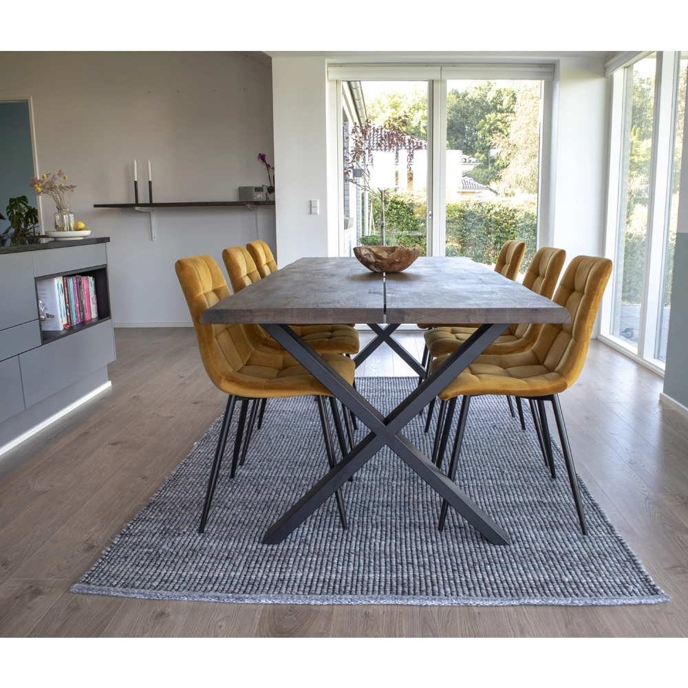Deska stolu Toulon je z dubu v elegantním kouřovém odstínu, který krásně zvýrazňuje kresbu dřeva. Olejovaná úprava podtrhuje přirozený vzhled dubu a zároveň pomáhá chránit povrch při každodenním používání. Šířka 95 cm a délka 200 cm poskytují dostatek prostoru pro pohodlné stolování s rodinou i hosty – bez stísněného sezení a zbytečných kompromisů.