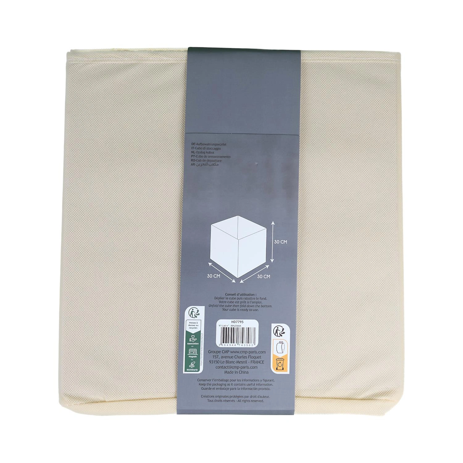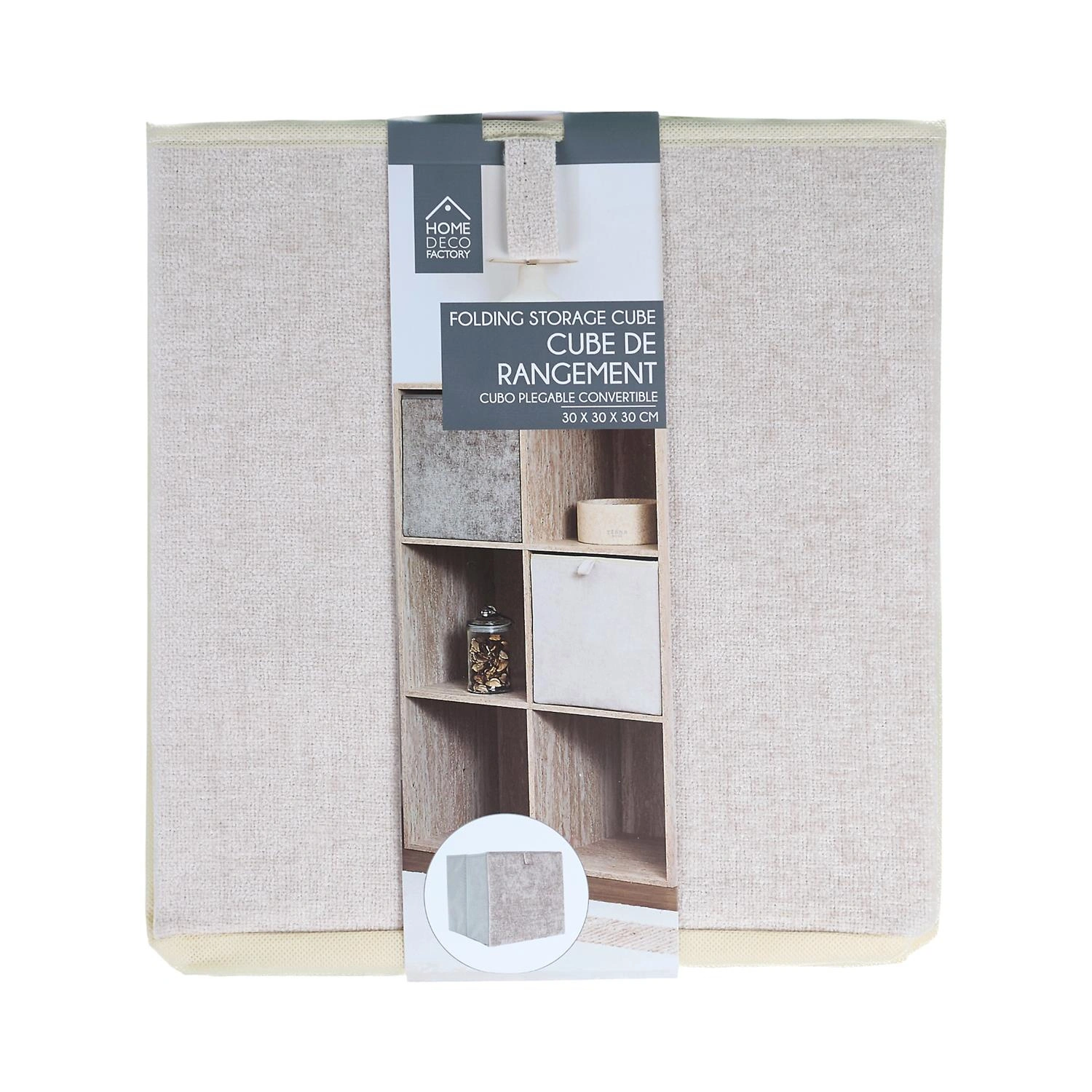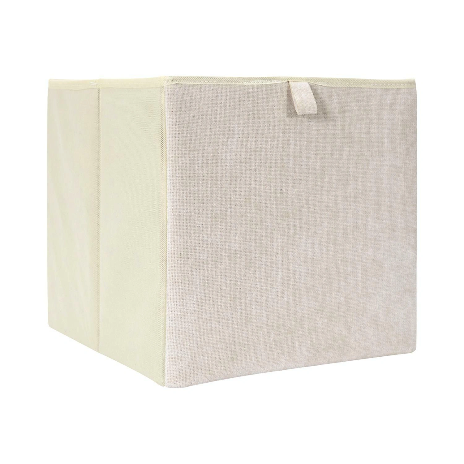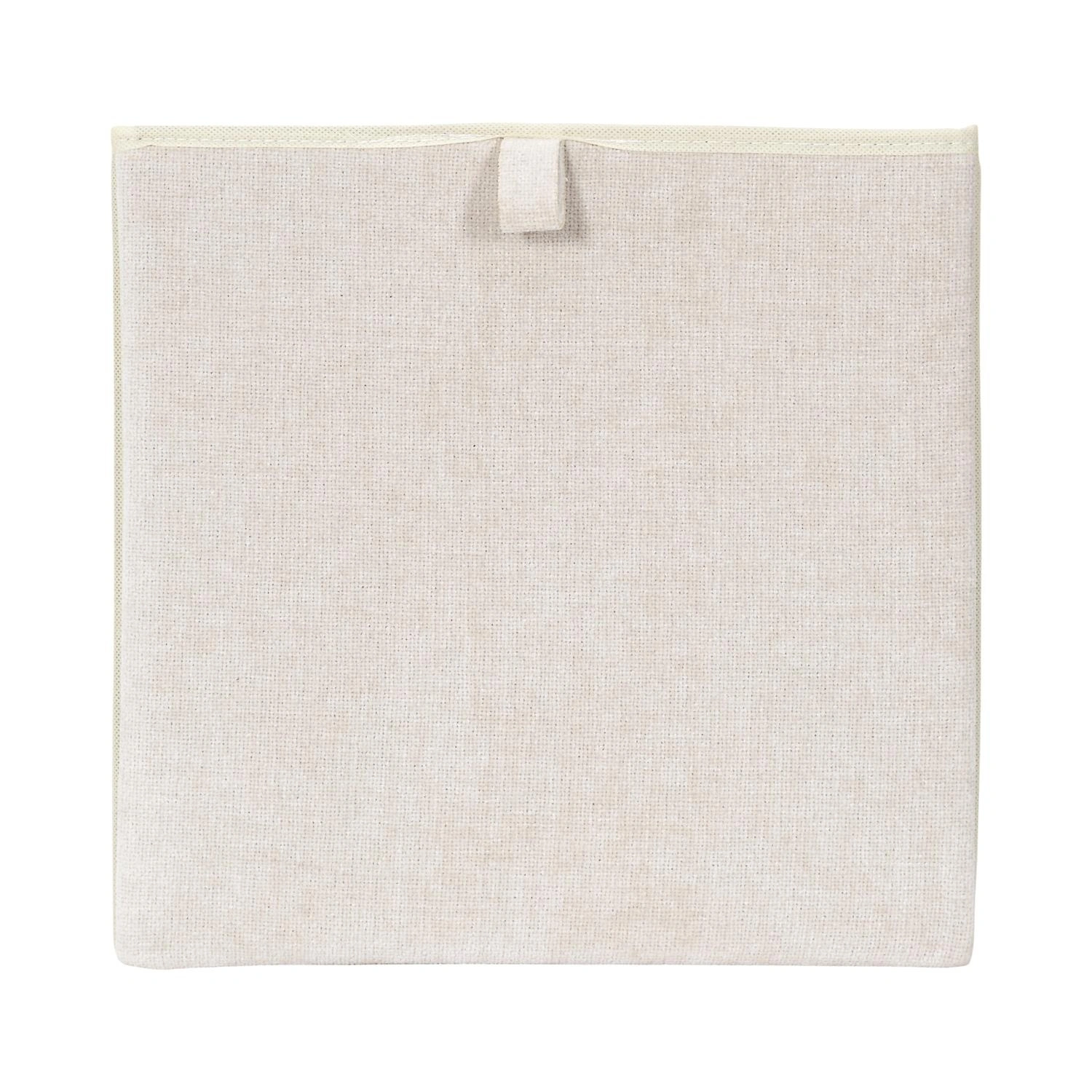 Tato krabice do regálu je navržena pro standardní police a niky 30x30 cm, takže se skvěle hodí do oblíbených modulárních regálů i vestavěných šaten. Pevná kartonová konstrukce udržuje stabilní tvar a látkový potah v béžové barvě zajišťuje, že box vypadá elegantně jak v otevřeném regálu v obývacím pokoji, tak i v domácí šatně.