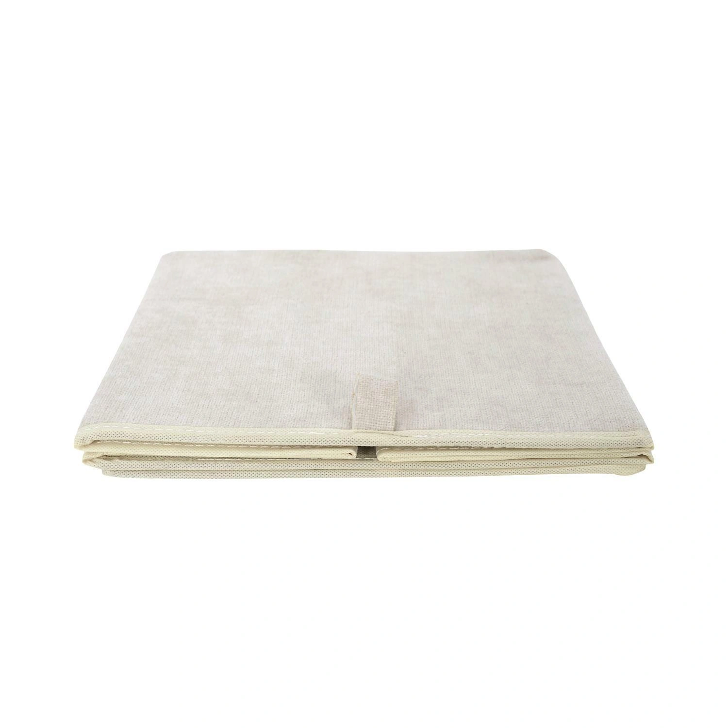 Textilní povrch je šetrnější k uloženým věcem než tvrdé plastové krabice. Hodí se na uložení šál, pásků, spodního prádla, lehkých svetrů nebo doplňků, které chceš mít po ruce, ale ne nutně na očích.