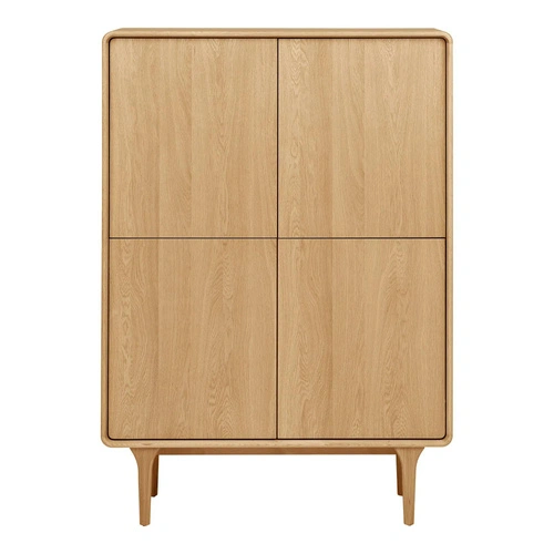 Komoda Darwin od značky House Nordic je vysoká, skandinávská dřevěná komoda o šířce 100 cm, v provedení přírodní dub. Čtyři uzavíratelné skříňky, hladká dvířka a štíhlé nohy vytvářejí funkční kus nábytku, který se skvěle hodí do obývacího pokoje, ložnice, předsíně i studentského pokoje.