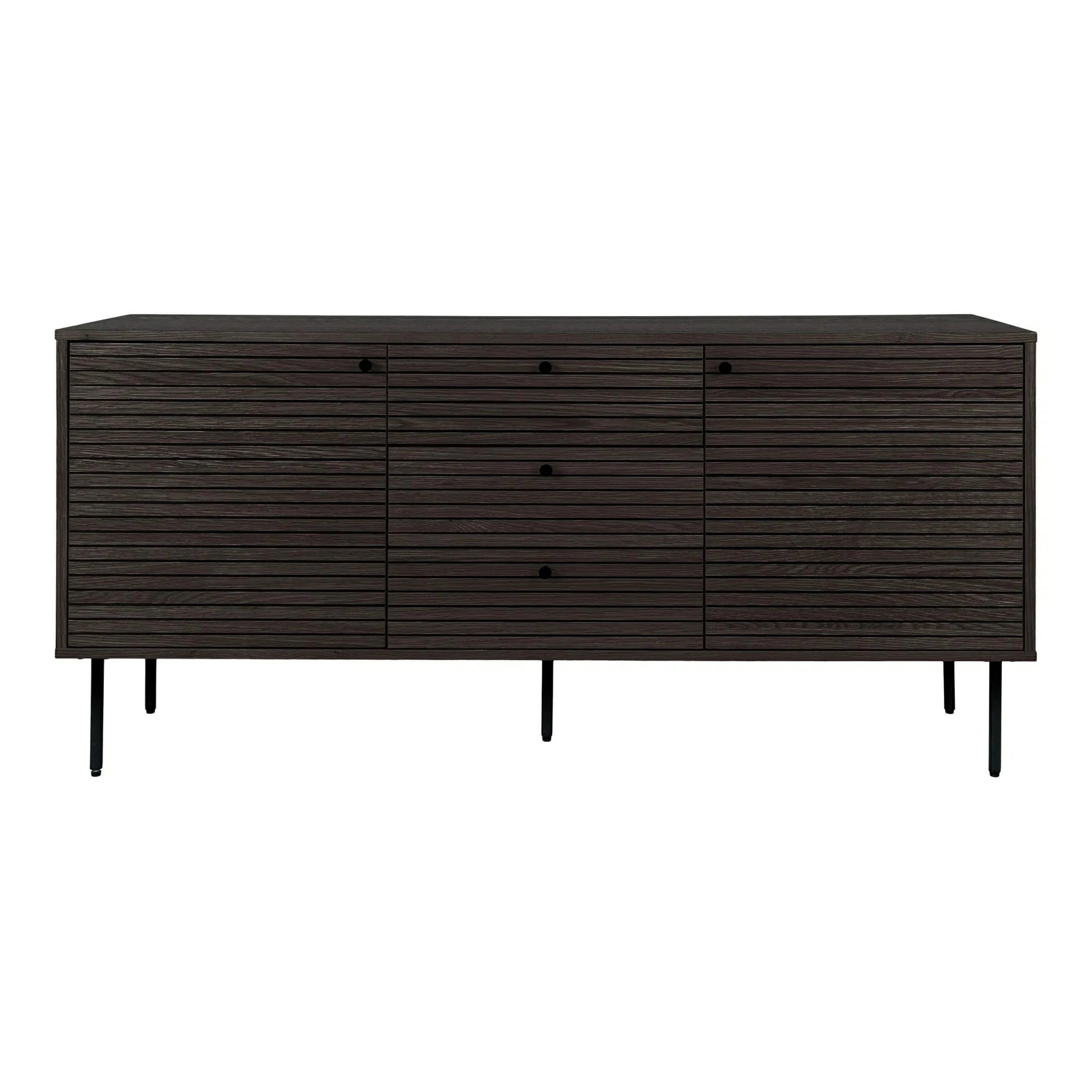 Komoda Kyoto dubová dýha kouřová, rýhovaná 150 cm do obýváku
