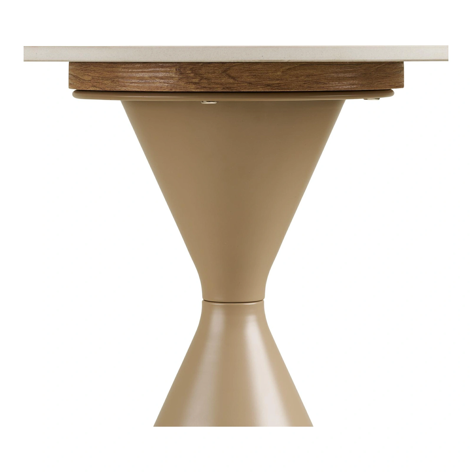 Neutrální písková barva desky i podnože zajišťuje, že tento kulatý konferenční stolek snadno sladíte s různými styly: od moderního minimalismu, přes skandinávský styl až po loftový nebo industriální konferenční stolek v teplejším provedení. Jemný lesk povrchu dodává stolku eleganci a podtrhuje jeho dekorativní charakter.