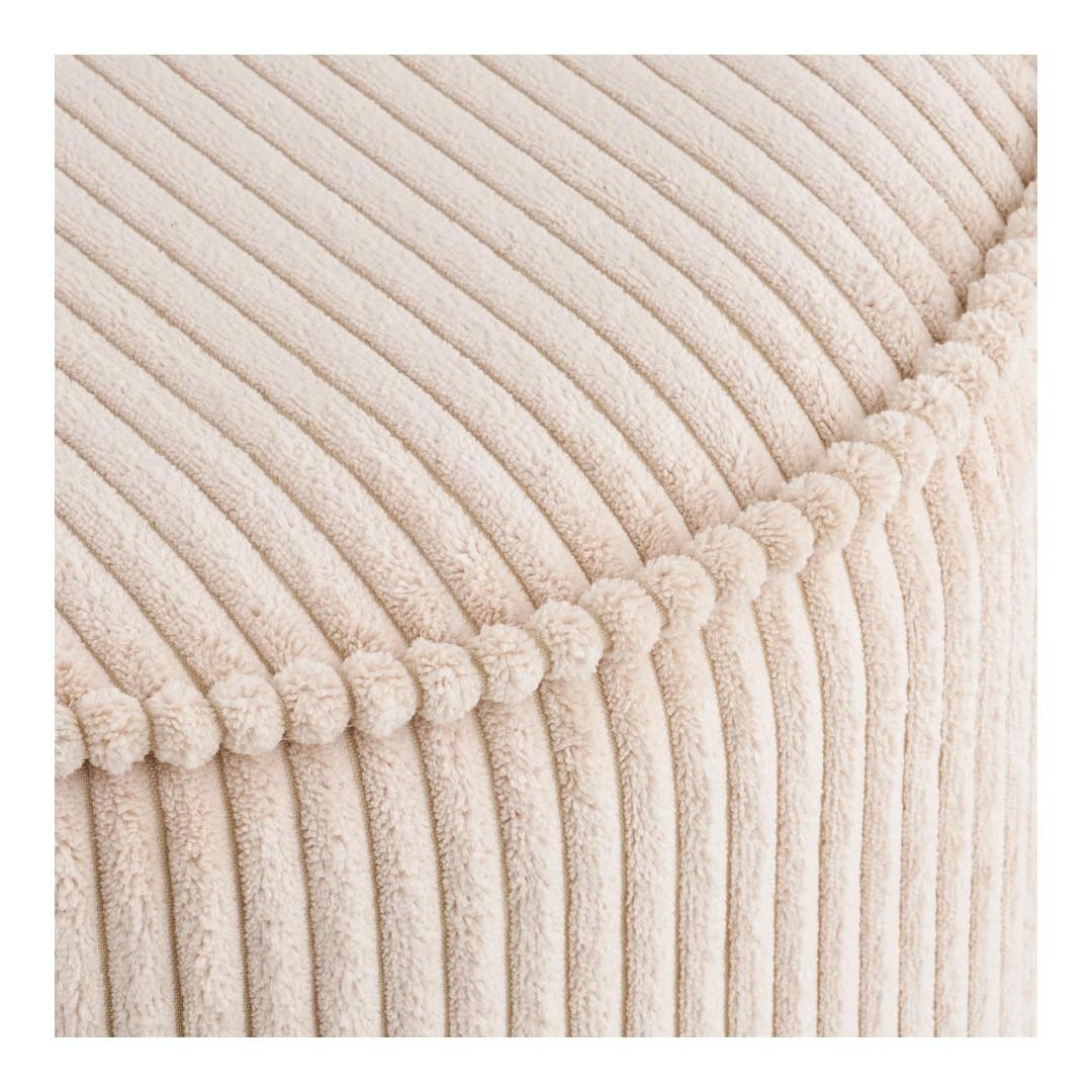 Béžová pufa Taupo byla navržena pro moderní, elegantní interiéry. Kulatý tvar a jednolitá, neutrální barevnost umožňují snadné sladění s pohovkou, křeslem nebo konferenčním stolkem v obýváku. Manšestrová struktura materiálu dodává celku vizuální měkkost a přináší do interiéru módní, ale nadčasový detail, který se dobře kombinuje jak se světlými, tak s tmavšími doplňky.