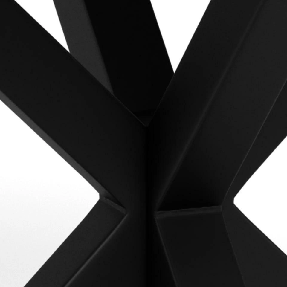 Stůl stojí na masivní ocelové podnoži v černé barvě s efektním křížovým uspořádáním nohou. Konstrukce je nejen designová, ale především stabilní – maximální nosnost stolu je až 100 kg, což přináší pocit jistoty při každodenním používání.