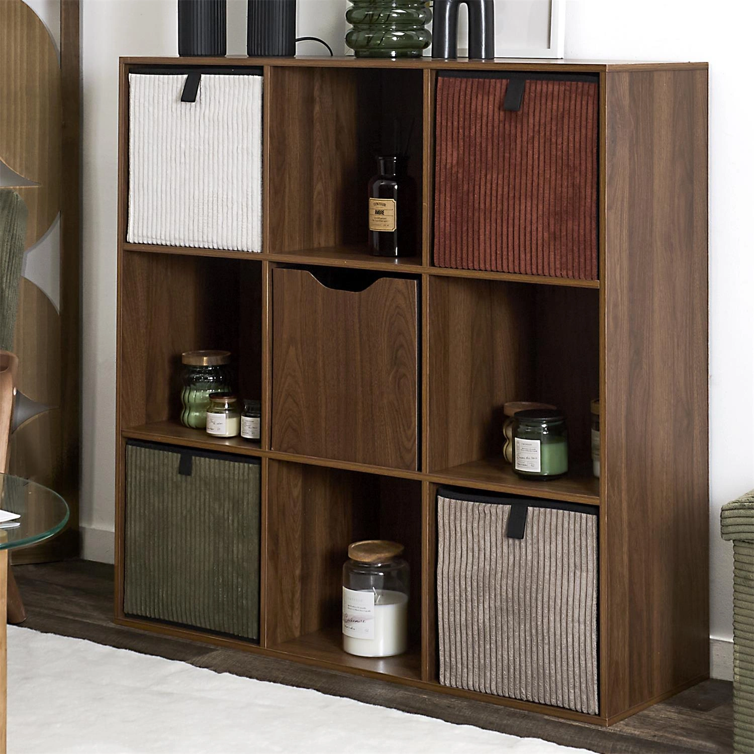 Pudełko do regału Tiffany 30x30 marki Intesi je elegantní, dekorativní textilní úložný box, který pomůže zorganizovat šatnu, ložnici nebo studentský pokoj. Krychlový formát 30x30x30 cm dokonale vyplní přihrádky mnoha oblíbených regálů a vytvoří tak estetický a jednotný systém ukládání.