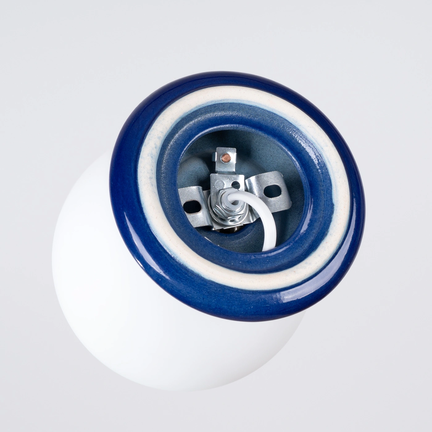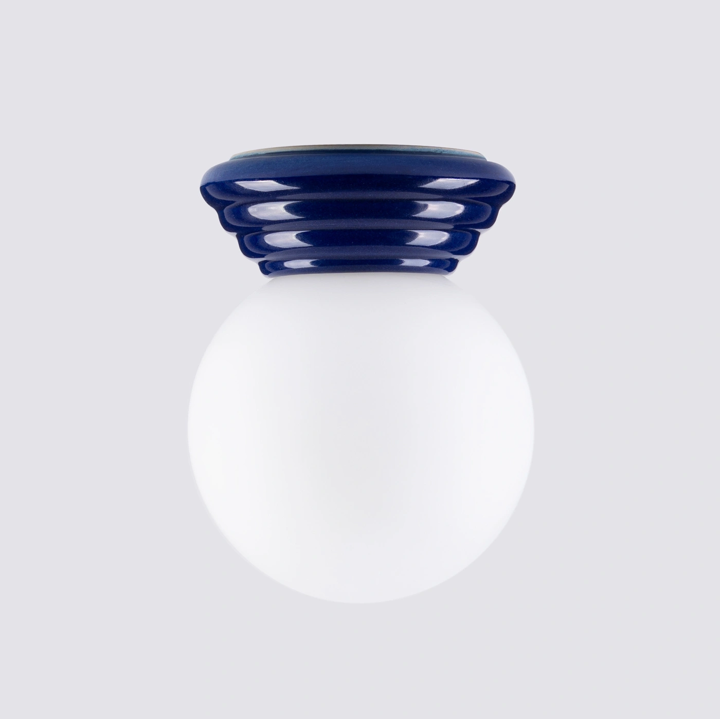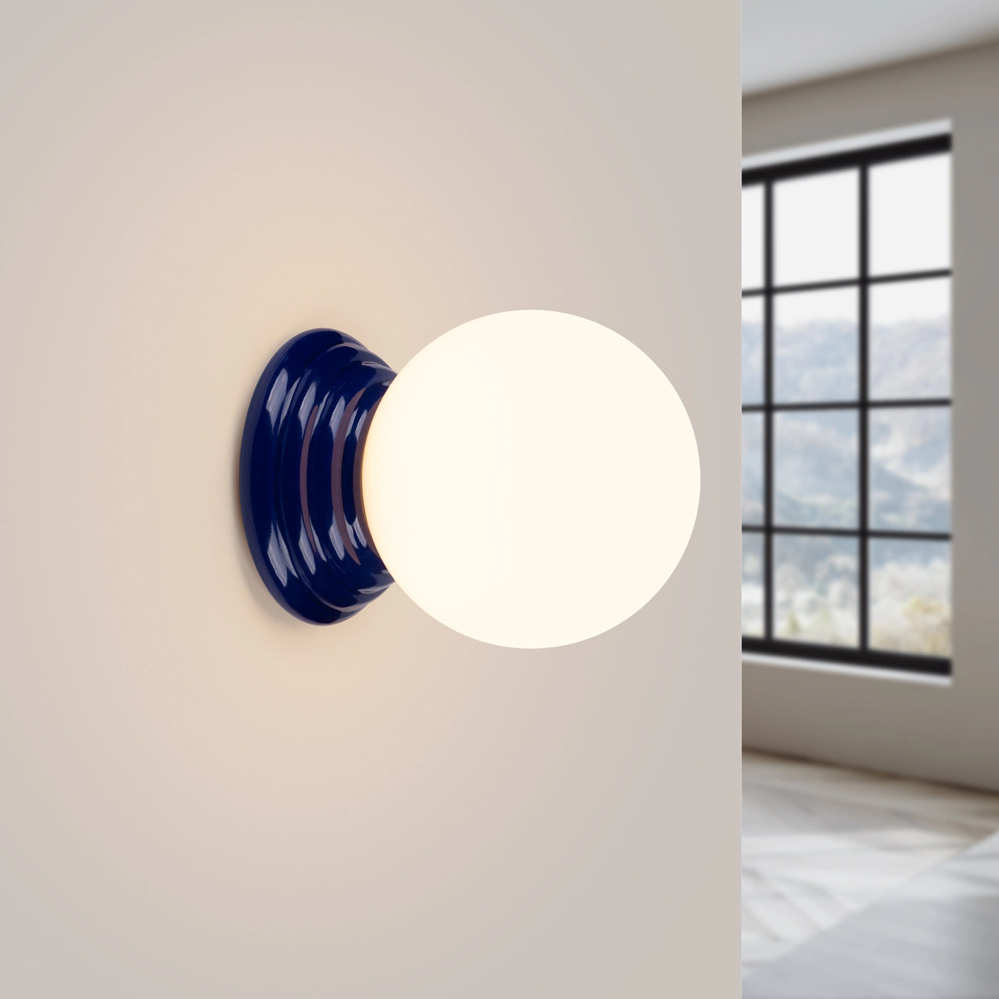 Modrá, ultramarínová základna svítidla z glazované keramiky přitahuje pozornost a dodává interiéru výrazný, ale stále elegantní akcent. Je to ideální volba, pokud chcete oživit bílou koupelnu, minimalistickou chodbu nebo moderní předsíň jednou výraznější barvou, aniž by prostor působil těžkopádně.