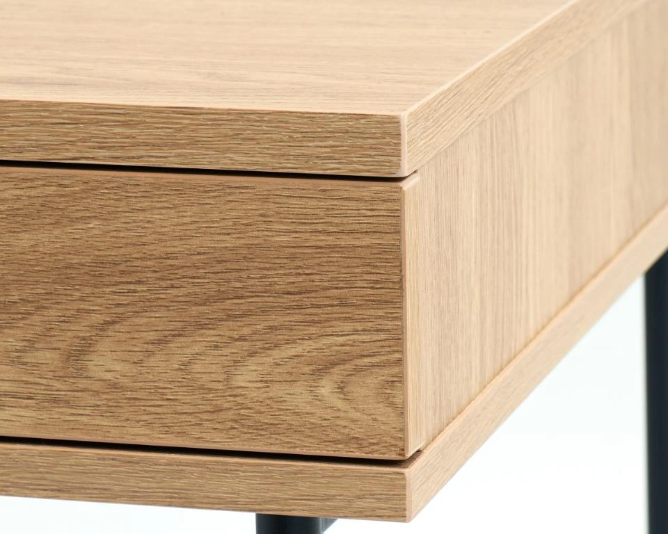 Obdélníková deska v přírodním odstínu dubu dodá interiéru teplo, a přitom si díky černým kovovým nohám zachovává syrový, loftový styl. Tento kontrast způsobuje, že stůl Pensacola výborně ladí jak s odhalenou cihlou a betonem, tak s bílými stěnami a světlými doplňky. Je to ideální psací stůl do kanceláře nebo domácí pracovny, kde je důležitý profesionální vzhled i útulná atmosféra podporující soustředění.