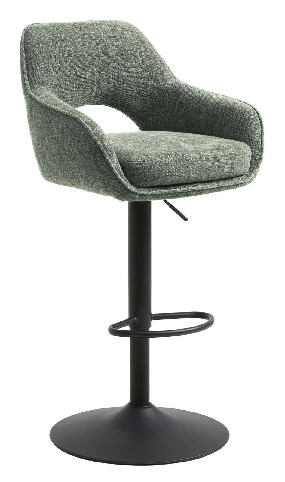 Barová židle hoker Cowley značky UNIQUE je moderní barová židle do kuchyně a jídelny, která spojuje pohodlné zelené sedátko s měkkým opěradlem a stabilní černou podstavou na jedné noze. Výškově nastavitelný v rozmezí cca 95,5–110,5 cm, takže hoker snadno přizpůsobíte kuchyňskému ostrůvku, snídaňovému baru nebo vysoké pracovní desce. Integrované područky a praktická opěrka na nohy zajišťují pohodlí i při delším sezení.