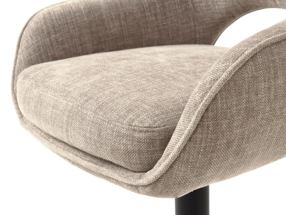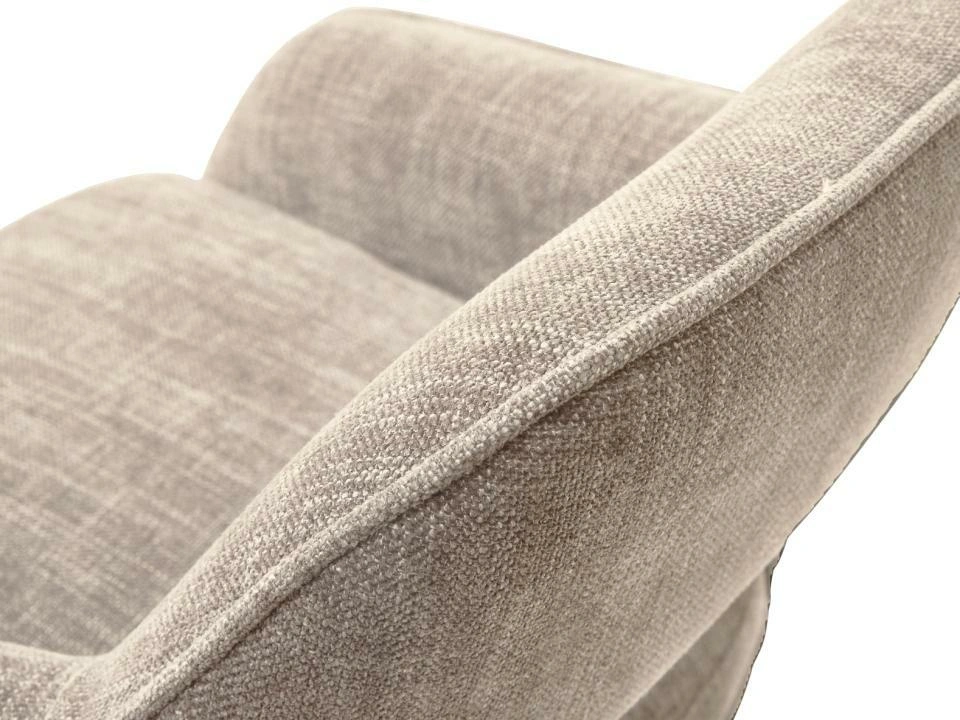 Sedák je zhotoven z odolné čalounické látky v béžové barvě, která je příjemná na dotek a snadno se udržuje v čistotě – což je důležité zejména u kuchyňského ostrůvku, kde se drobným nečistotám nevyhneš. Kovová podnož s černým polomatným povrchem je odolná vůči každodennímu používání a dobře snáší intenzivní sezení u pracovní desky. Přestože má konstrukce vysokou stabilitu, židle váží jen cca 7,85 kg, takže ji bez námahy přesuneš z kuchyně do obývacího pokoje nebo jídelny.