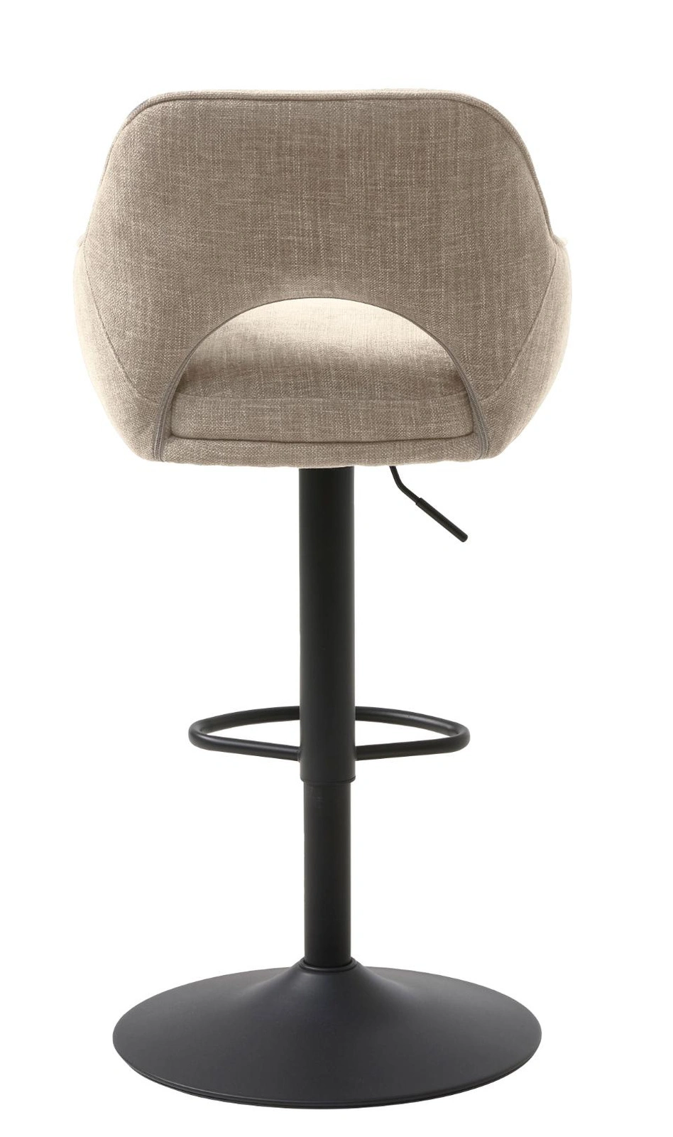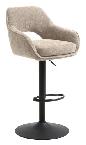 Barová židle – hoker Cowley značky UNIQUE je čalouněné barové křeslo do kuchyně, které spojuje béžový, měkký sedák s moderní černou podnoží na jedné noze. Výškově nastavitelný v rozmezí 95,5–110,5 cm, s pohodlným opěradlem, područkami a praktickou opěrkou na nohy – je to ideální hoker k kuchyňskému ostrůvku i domácímu baru.