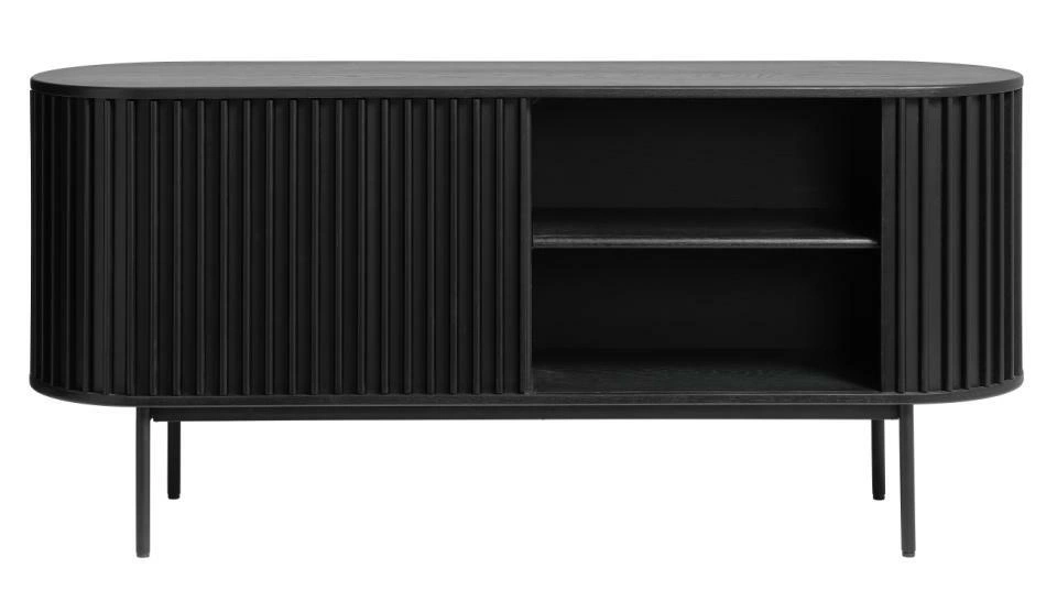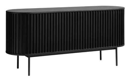Komoda Siena od značky UNIQUE je elegantní, černá moderní komoda o šířce 160 cm, která spojuje dekorativní vzhled s vysokou funkčností. Oválný korpus, drážkované čelo a štíhlé kovové nohy vytvářejí vytříbenou formu, ideální do obývacího pokoje, jídelny nebo reprezentativní předsíně. Uvnitř najdete 2 police a praktickou zásuvku, které usnadní udržení pořádku každý den.