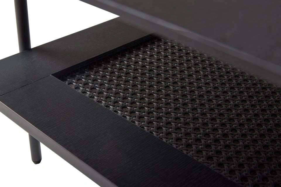 Pensacola je obdélníkový konferenční stolek, který skvěle zapadne do moderních interiérů, loftových, minimalistických i boho aranžmá. Deska v dekoru černý dub připomíná elegantní dřevěný konferenční stolek, zároveň se ale velmi snadno udržuje. Černý ocelový rám na čtyřech nohách působí lehce a vzdušně, takže industriální konferenční stolek nezahlcuje ani menší obývací pokoj a může sloužit jak jako konferenční stolek, tak jako praktická obývací lavice. Spodní police vytvořená kombinací rámu a dekorativního ratanu dodává stolku výrazný boho charakter. Je to ideální místo na knihy, ovladače, deky nebo dekorace, díky čemuž zůstává horní deska vždy přehledná a uklizená.Funkčnost a pohodlí pro každý den