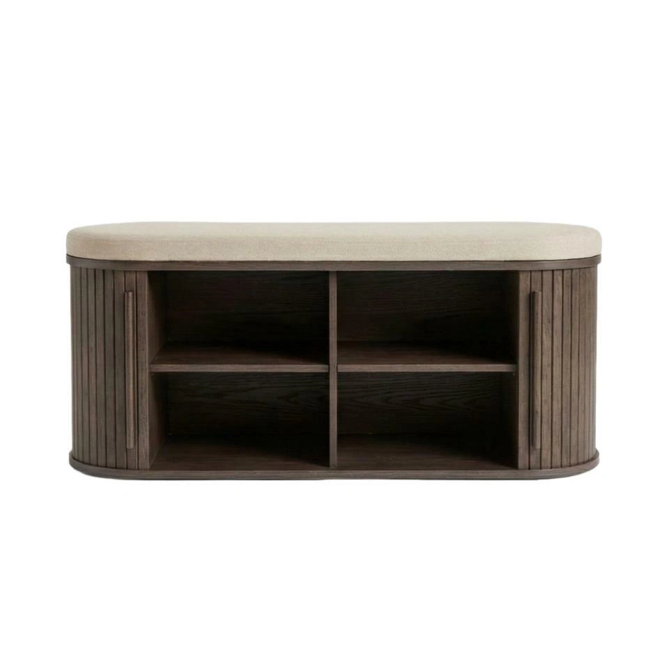 Horní část lavice tvoří pohodlný, měkký sedák vyplněný pěnou, díky čemuž se na ni můžete komfortně posadit při obouvání bot nebo při odkládání kabelky po celém dni. Hladká potahová látka je příjemná na dotek a snadno se udržuje v čistotě – stačí ji pravidelně vysávat a otírat vlhkým hadříkem.