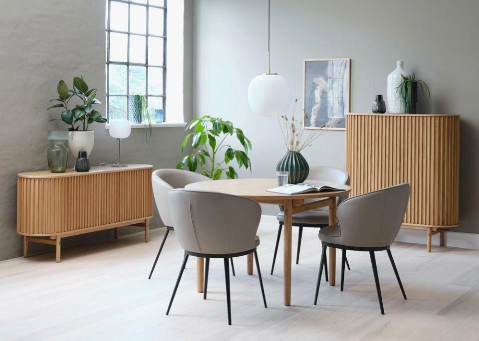 Carno se skvěle hodí do interiérů, kde hraje roli světlost, lehkost a nadčasový vzhled. Přírodní dub a matná povrchová úprava dodávají stolu klidný a elegantní vzhled bez zbytečných ozdob. Díky tomu ho snadno sladíte jak s moderní jídelnou, tak s útulnou kuchyní nebo jídelní zónou v obývacím pokoji.