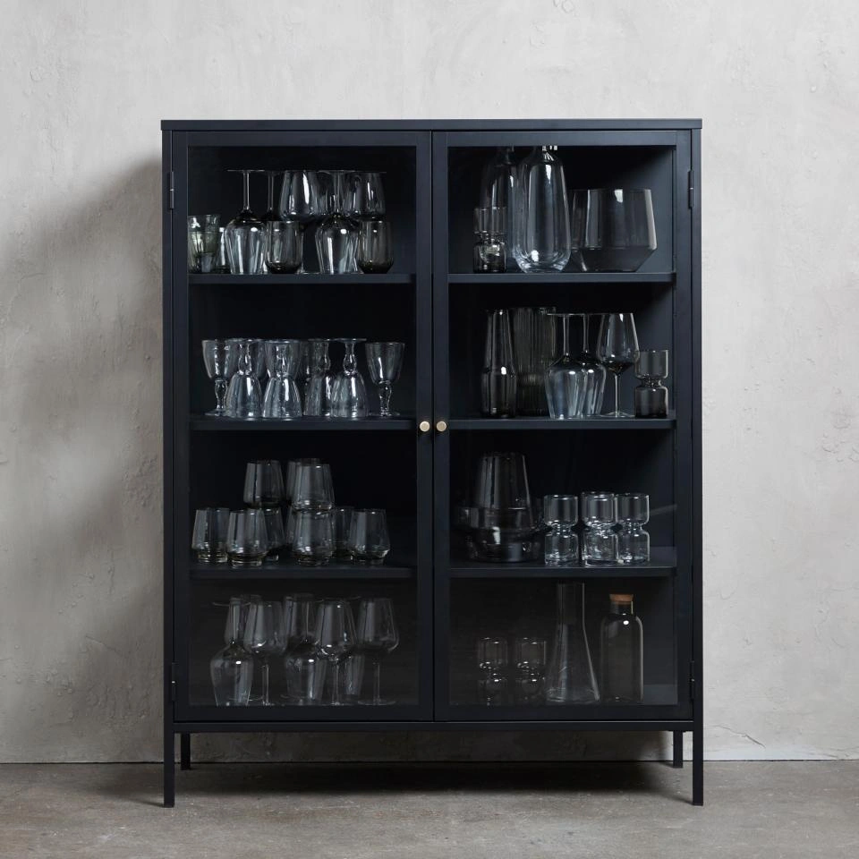 Vitrína Carmel černá kovová loftová do obýváku na knihy a alkohol