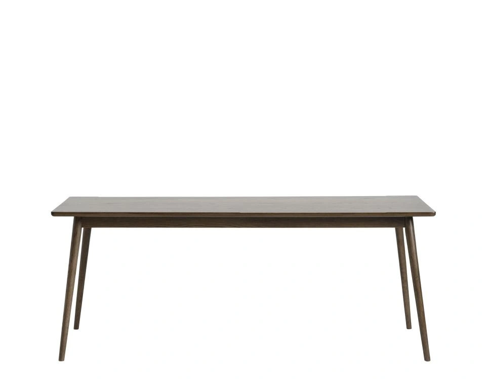 Podnož stolu je vyrobena z dubového dřeva v kouřovém odstínu ladícím s deskou. Čtyři nohy zajišťují stabilitu a umožňují pohodlné zasunutí židlí po obou delších stranách. Jednoduché, minimalistické linie a přírodní barevnost skvěle zapadnou do moderních skandinávských interiérů – od světlých prostor s bílou a béžovou, až po útulnější obývací pokoje v teplých, zemitéch tónech. Jde o nábytek, který snadno zkombinujete jak s čalouněnými židlemi, tak s modely na dřevěných nohách.