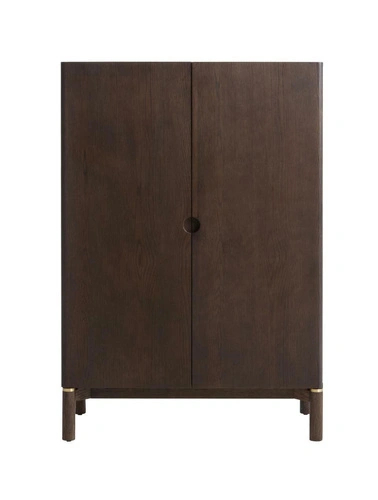 Komoda Arun značky UNIQUE je vysoká, moderní dřevěná komoda o šířce 90 cm v hlubokém, hnědém odstínu espresso. Kombinuje dýhovanou horní desku, hladké čelní plochy a stabilní podstavu z dubového dřeva a vytváří tak elegantní kus nábytku ideální do obývacího pokoje, jídelny nebo ložnice.