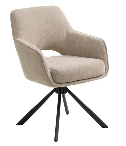 Otočná židle Cowley značky UNIQUE je moderní čalouněná židle, která spojuje pohodlí křesla s lehkou formou ideální pro každodenní používání. Béžový sedák, černá podnož a praktické područky vytvářejí promyšlený model do jídelny, obývacího pokoje nebo kuchyně, v němž jde komfort ruku v ruce s elegantním vzhledem. Při šířce 59 cm a výšce sedu 51 cm se Cowley skvěle hodí k většině stolů a nabízí volnost pohybu i pohodlnou oporu.